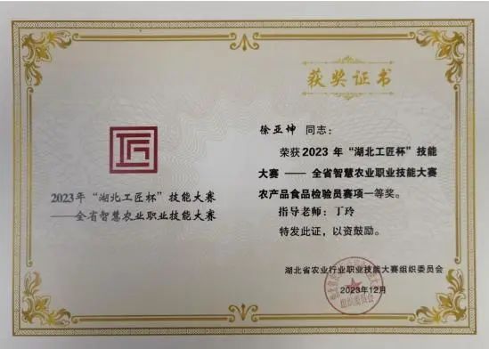 近年本专业学生先后在全国职业院校农产品质量安全检测技能大赛、湖北省智慧农业职业技能大赛等赛事中获得团体一等奖、个人一等奖等多个奖项,涌现出了一大批能工巧匠和技能大师。