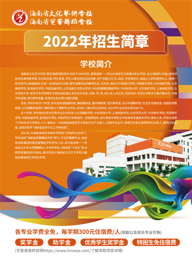 海南省文化艺术学校(海南芭蕾舞蹈学校)2022年招生简章