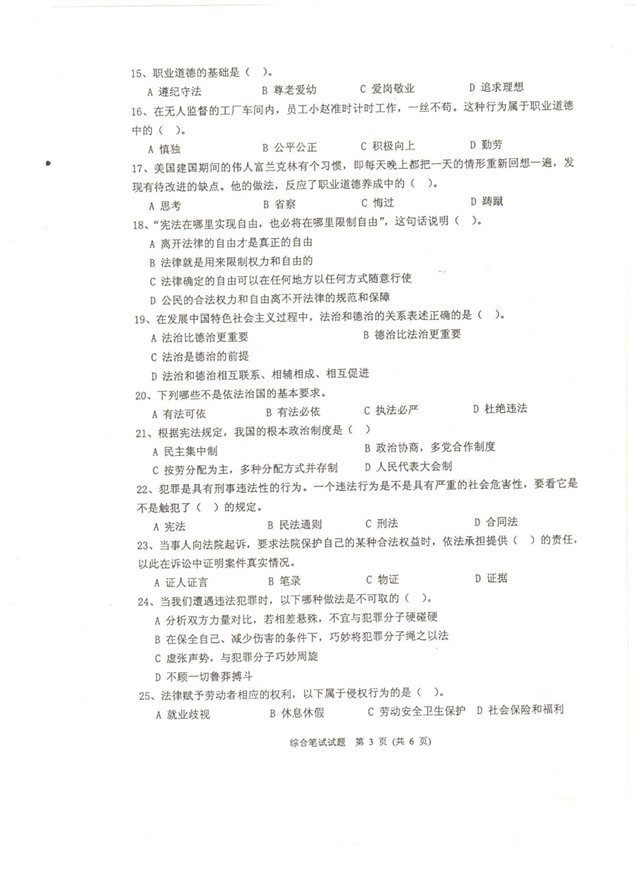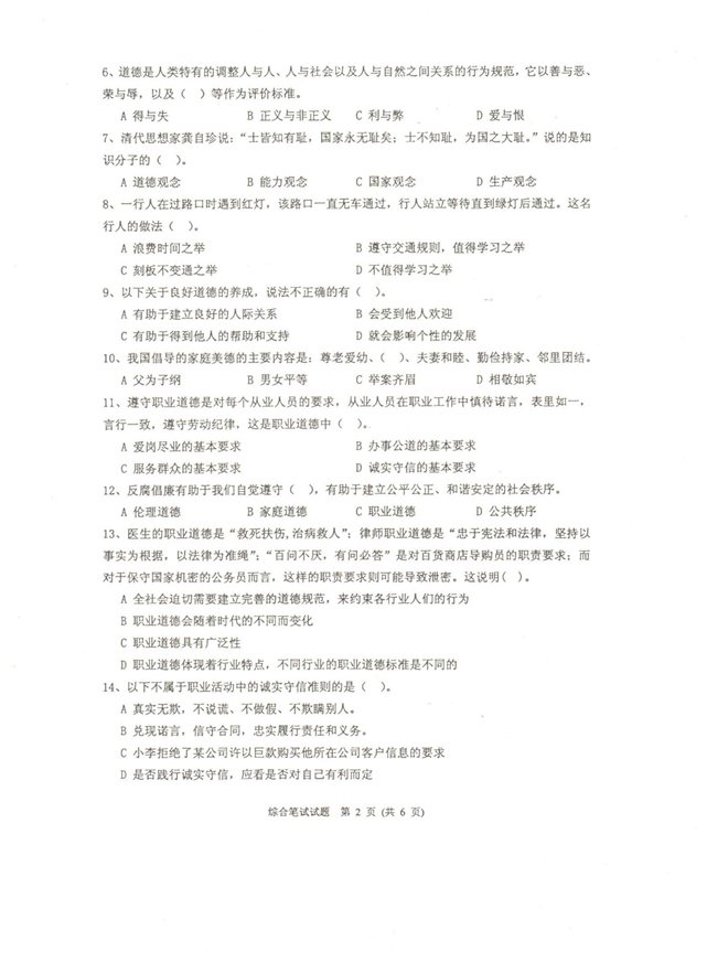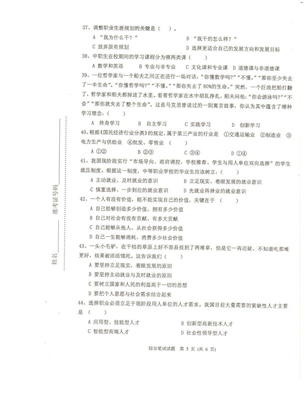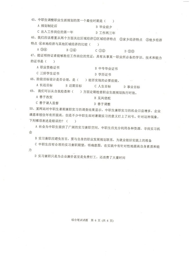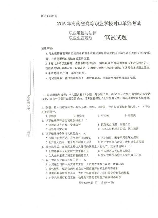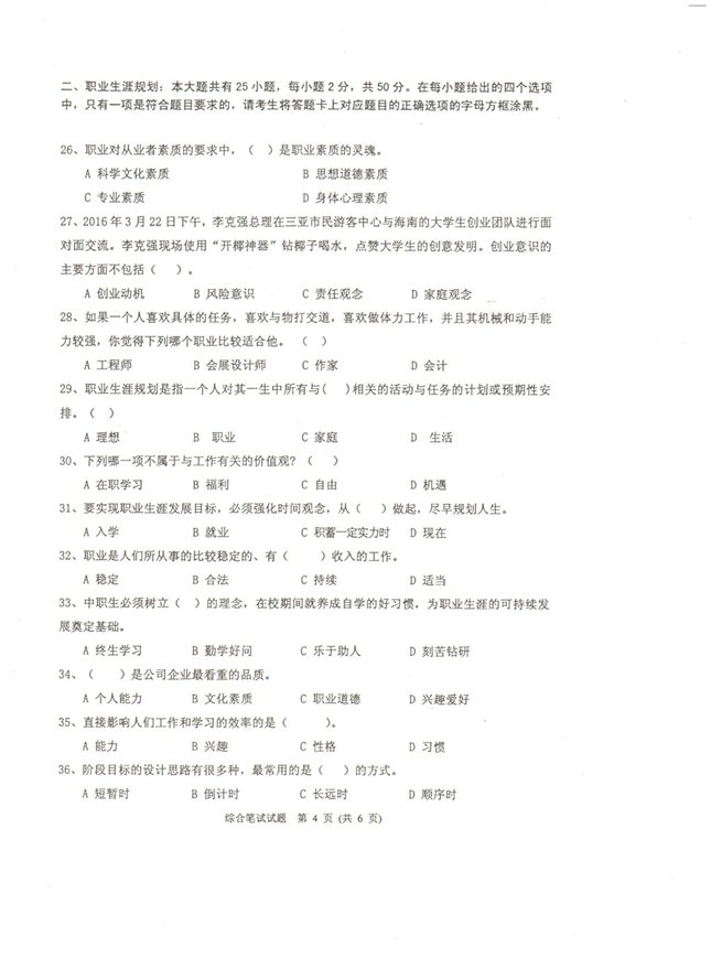 2016年海南省高等职业学校对口单独考试笔试试题(职业生涯规划样本)