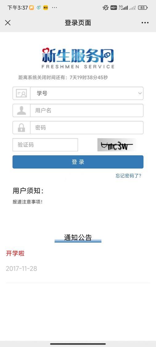 1、登录网上迎新系统