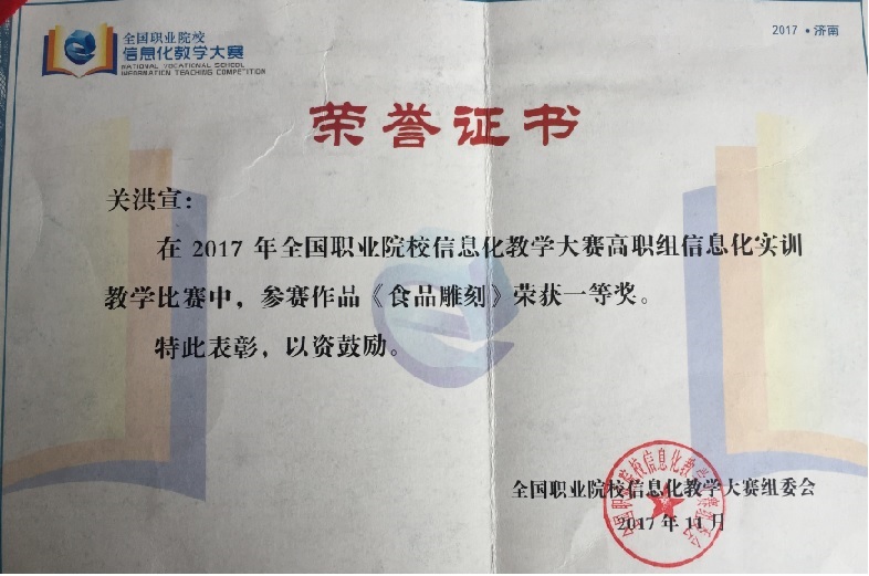关洪宣老师荣获2017年全国高职院校信息化实训教学 大赛一等奖