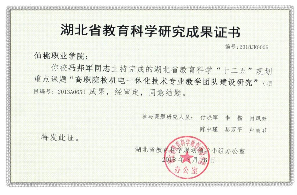 数字化设计与制造技术专业教学团队认真贯彻落实习近平总书记关于职业教育的讲话精神,面向智能装备制造行业中工业互联网、工业机器人、智能检测技术、数字化制造、智能控制等关键技术,建立由企业高管、技术专家、专业骨干教师组成的专业群课程体系开发团队,深入富士和、健鼎科技、湖北羽林等智能制造企业调研,与企业管理人员、一线技术人员、毕业生座谈,分析数字化设计与制造技术产业链的职业岗位的名称和工作流程,构建湖北省产业工人培训示范基地,坚持教学、科研和社会服务等工作,取得了多项高水平教学科研成果。