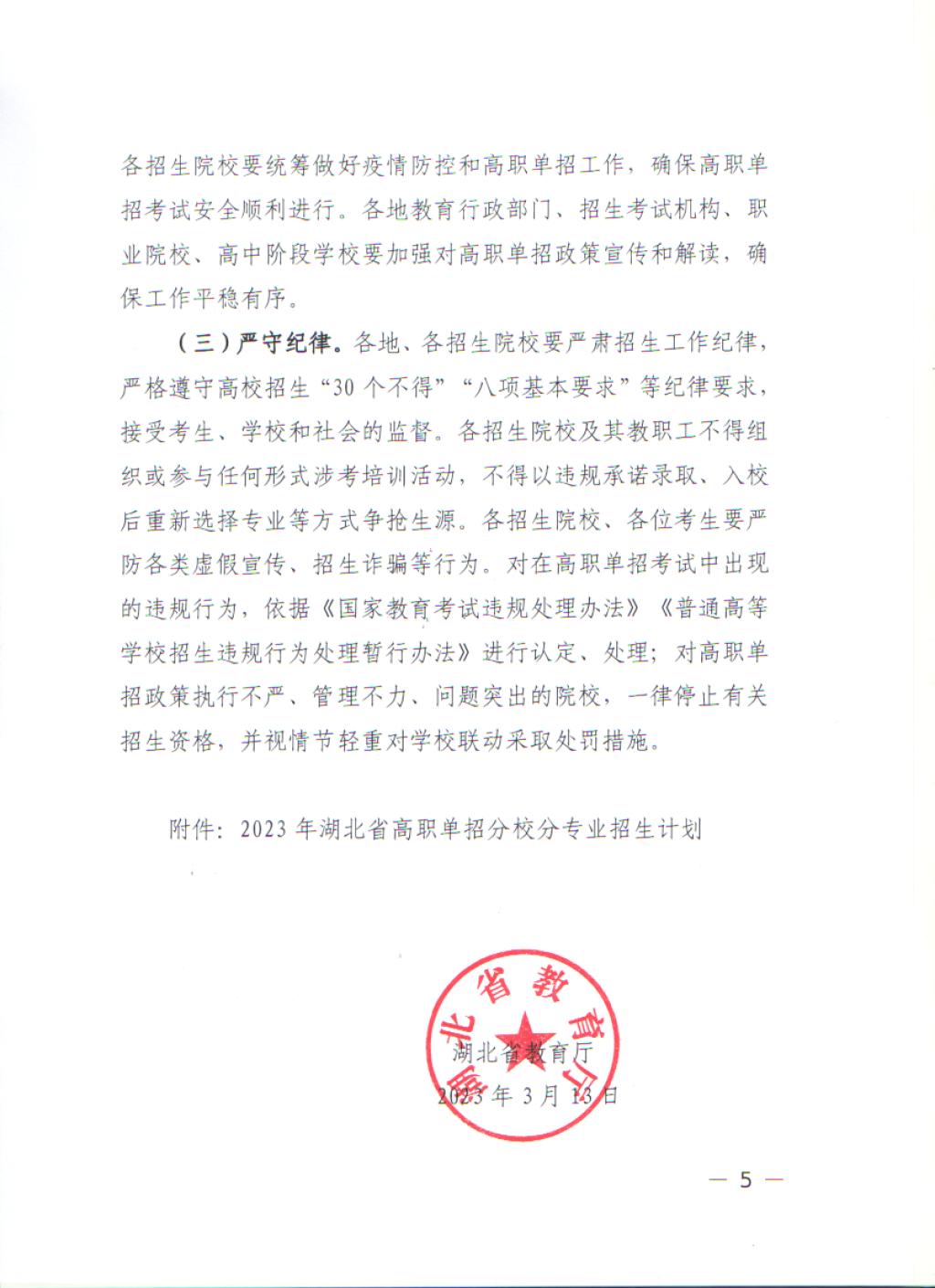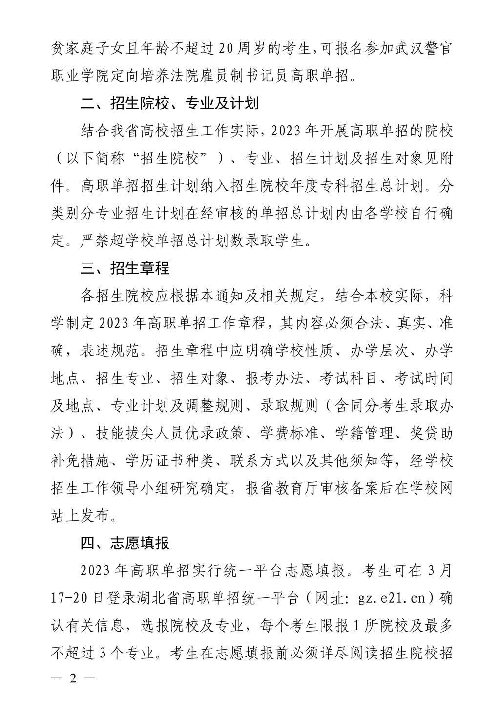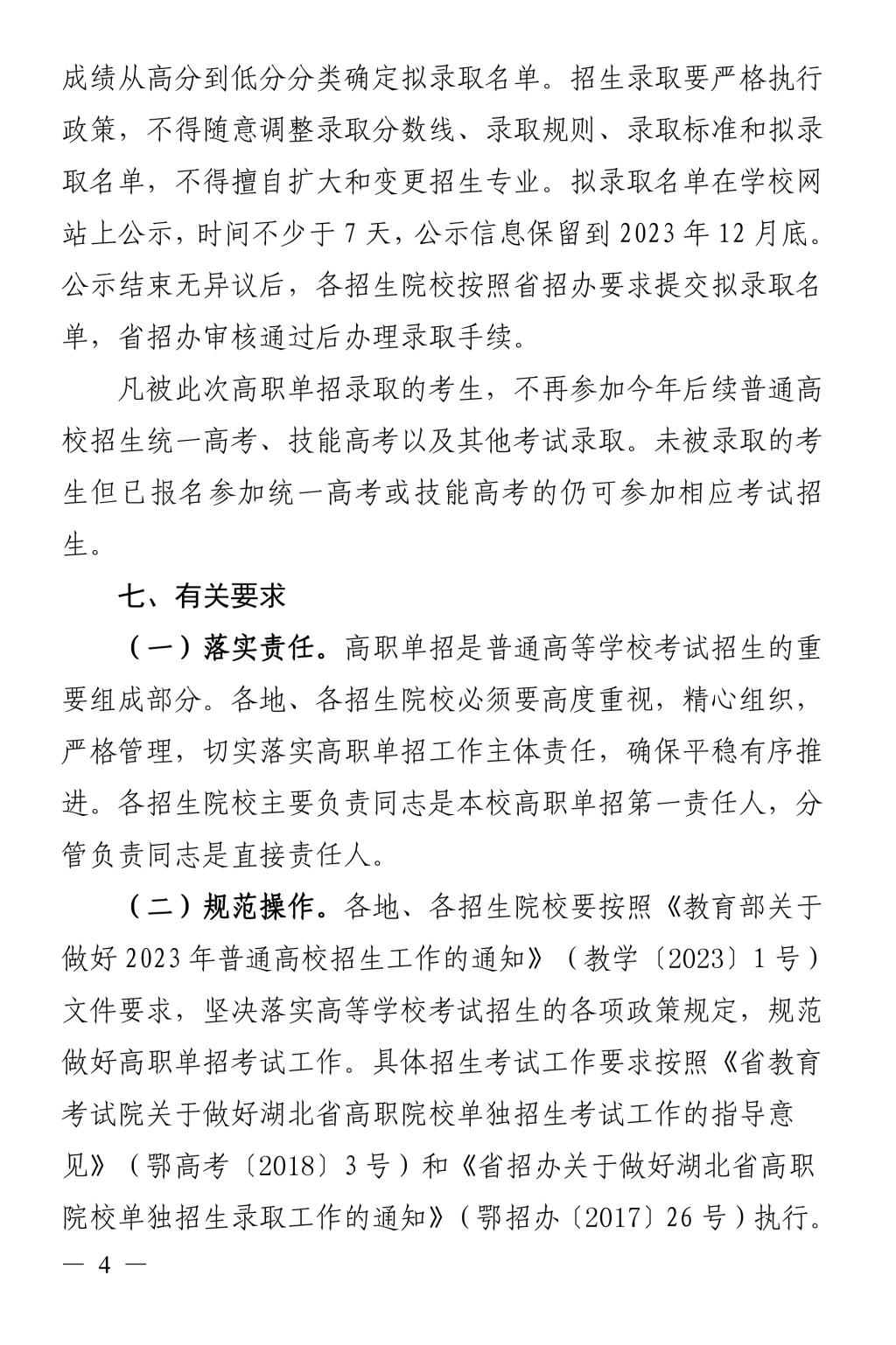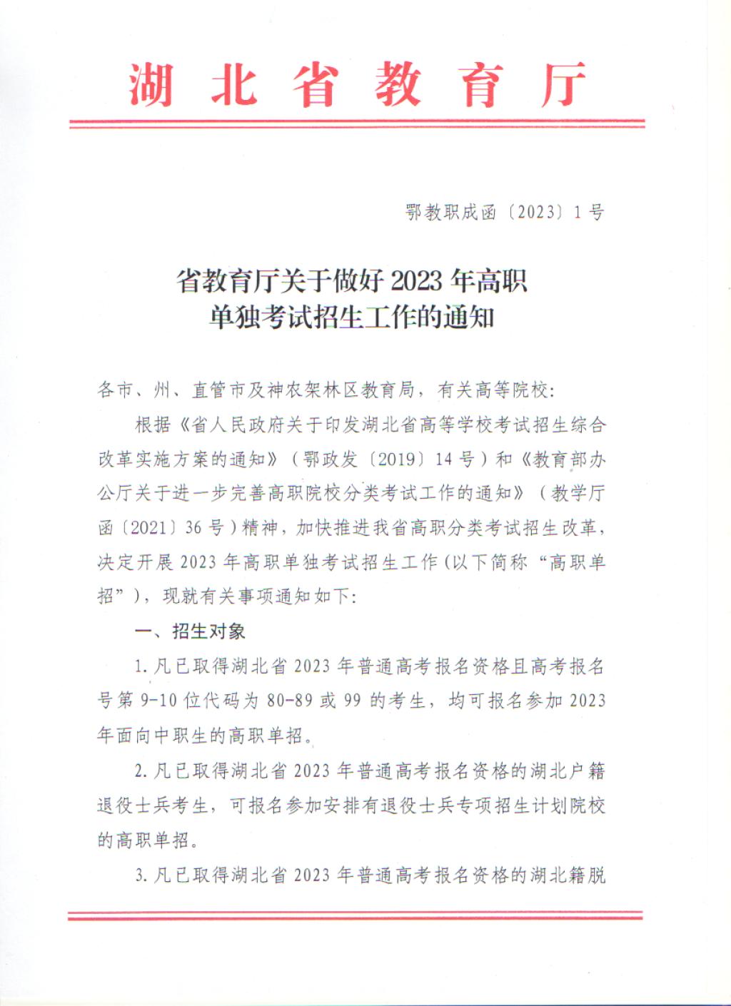 2023年湖北省教育厅高职单独考试招生工作的通知