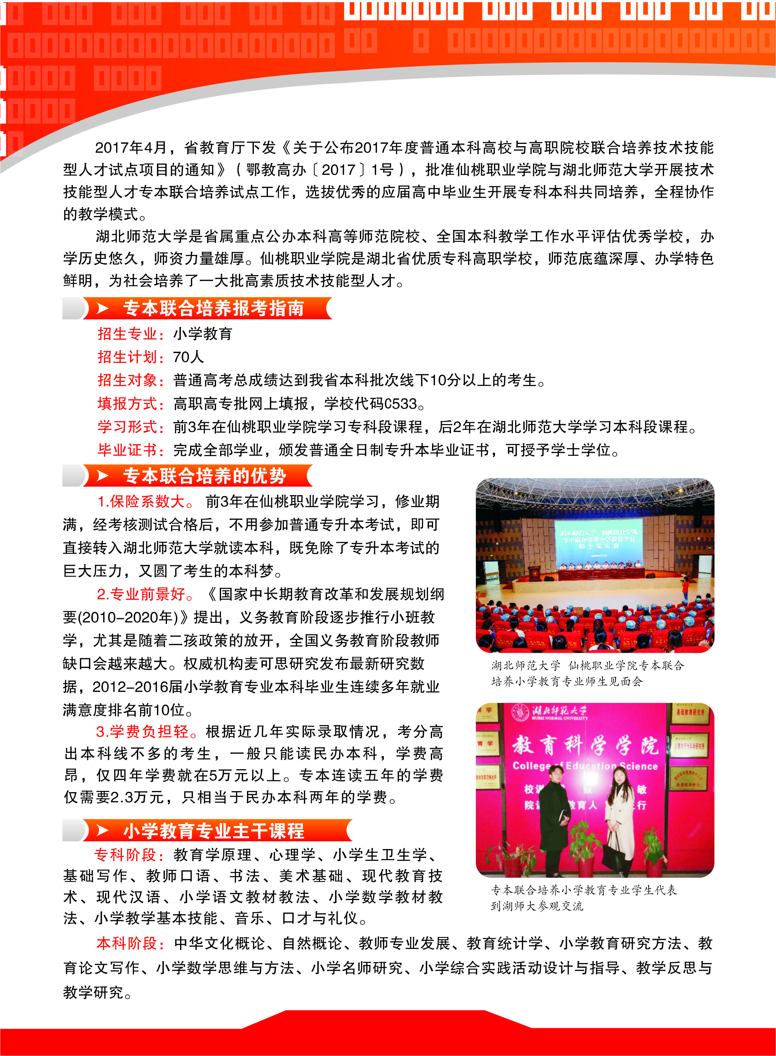 2021年仙桃职业学院与湖北师范大学联合培养本科招生简章