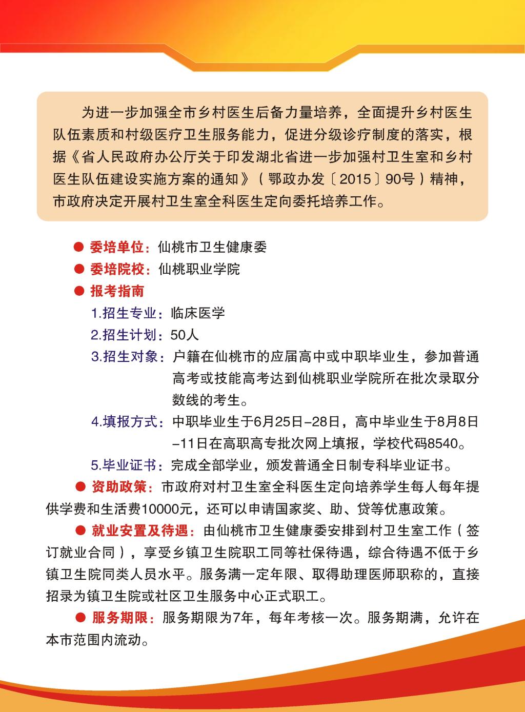 仙桃市村卫生室全科医生定向委托培养招生简章