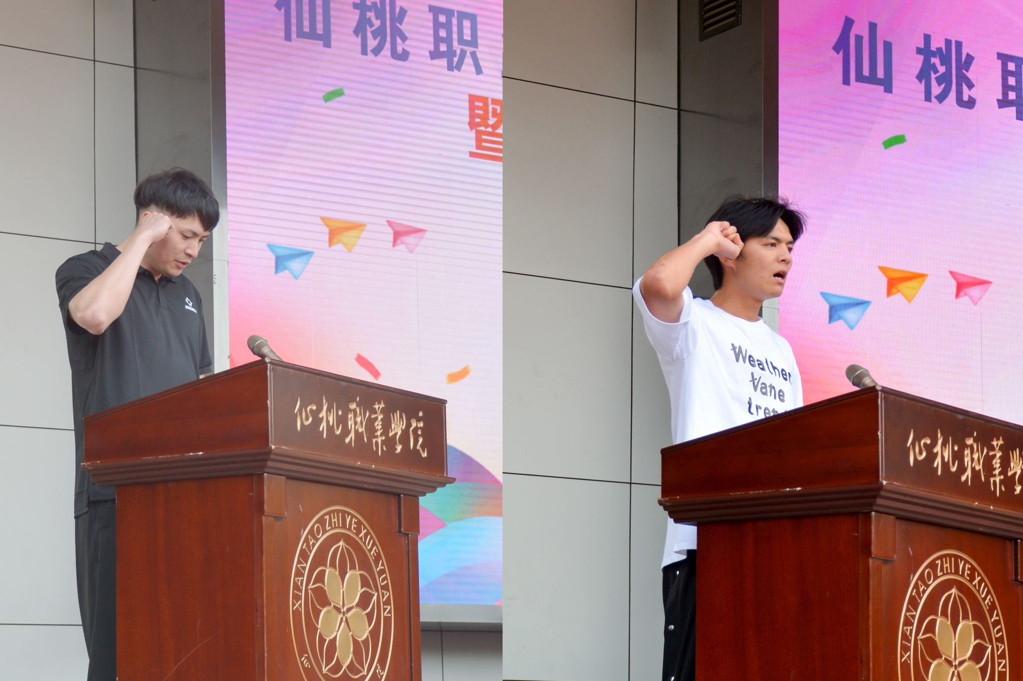 经济与管理学院学生王欣奇、大学生文化体育中心教师毛鹏辉分别代表运动员、裁判员宣誓。