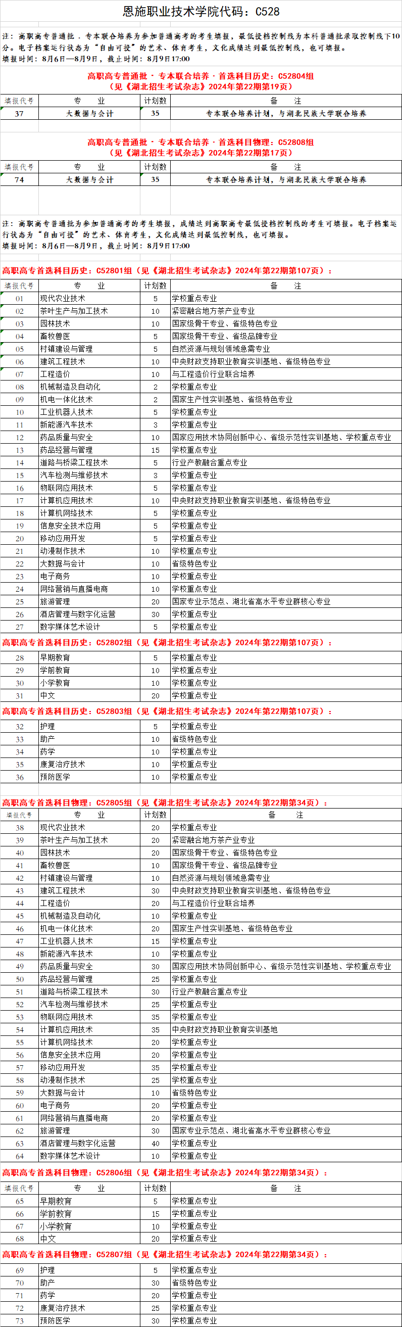 8月6日—8月9日是湖北省高职高专普通批志愿填报时间,湖北普高历史类、物理类考生成绩达到省招办公布的控制线,可以填报我校志愿;提前批艺术、体育考生文化成绩达到省招办公布的控制线,且电子档案运行状态为“自由可投”的考生也可填报我校志愿。