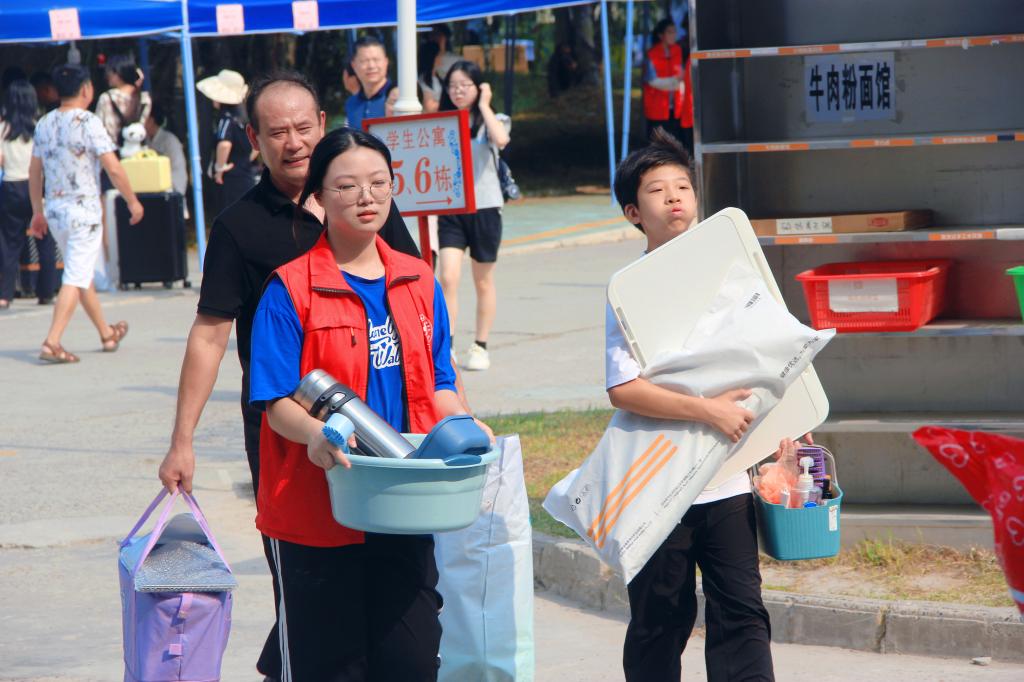 为解决新生来校和行李搬运的问题,学校开启点对点运送、“一站式”服务,在荆州火车站、荆州枢纽站设立迎新接待站,并安排车辆在各接待站点与学校之间循环往返迎接新生,划定迎新专门通道,宿舍志愿者一对一贴心搬运行李。同时,学校在校门口、校园主干道、学生宿舍区等设立志愿者服务点,为学生提供便利。