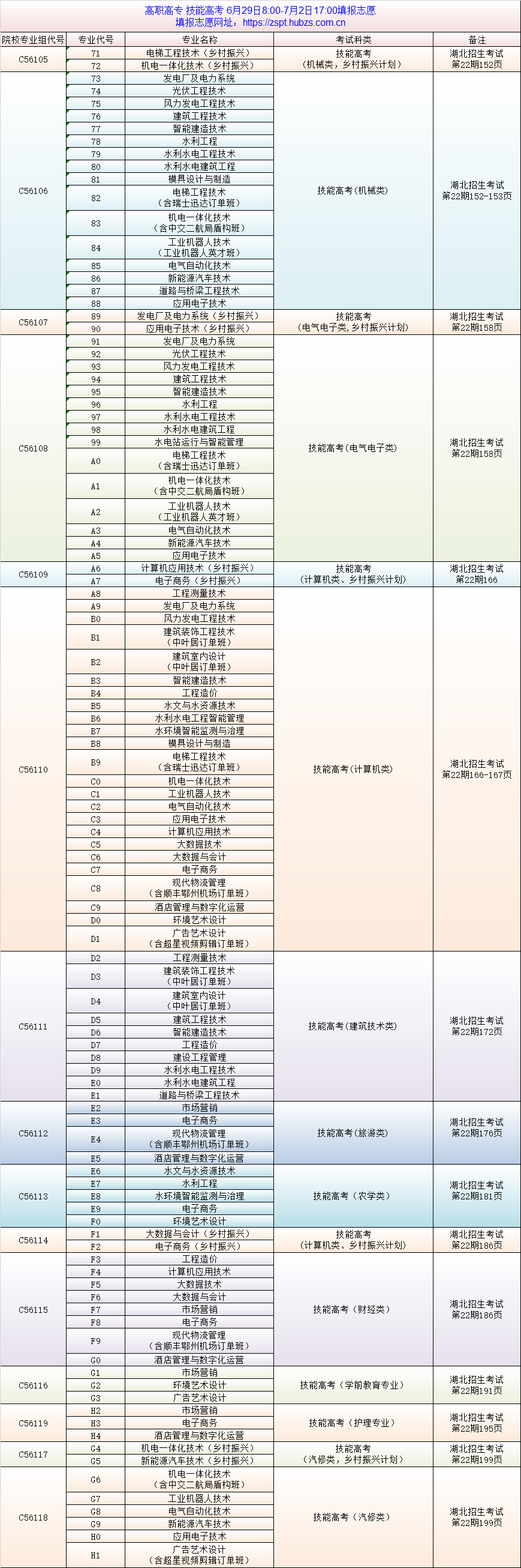 2022年我院技能高考专科批专业组及专业代号