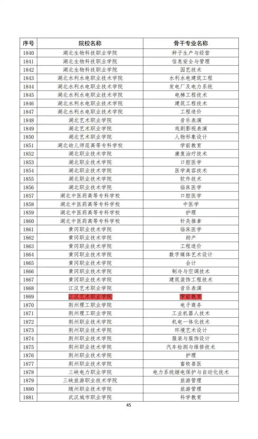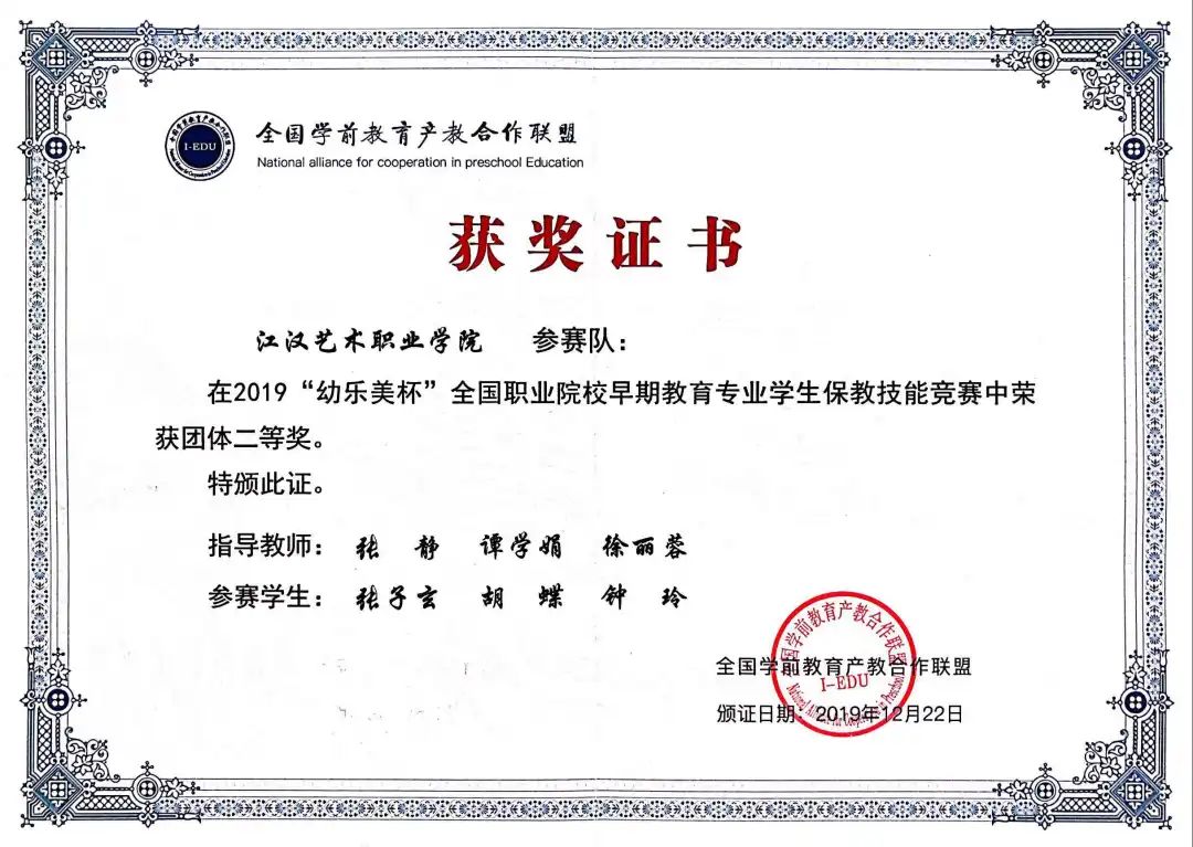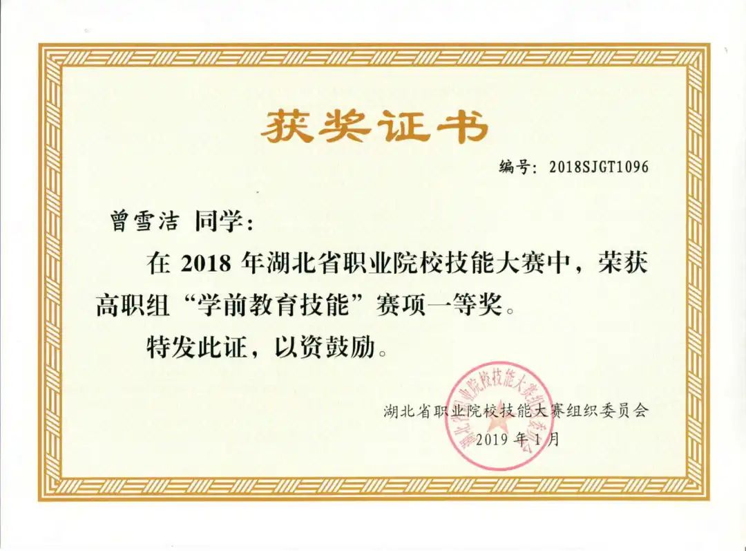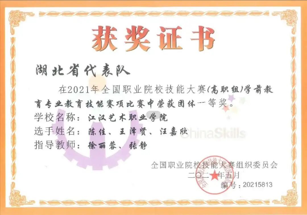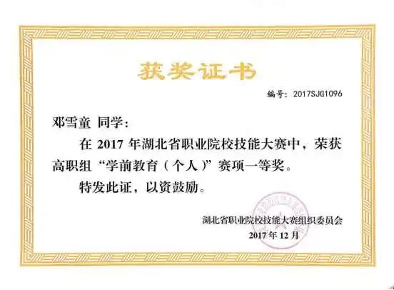 学前教育专业是教育部认定高等职业教育创新发展行动计划国家级骨干专业、湖北省高等职业教育品牌专业、湖北省获批立项的高水平专业群。在2017-2019年湖北省职业院校技能大赛高职组学前教育技能赛项中,江汉艺术职业学院学前教育专业屡战屡胜,连续三年夺得一等奖。在2021年全国职业院校技能大赛高职组学前教育技能赛项中,为湖北省捧回了首个一等奖奖杯。连续五届获得湖北省大学生艺术节省级一等奖,2021年获得全国大学生艺术节展演一等奖。