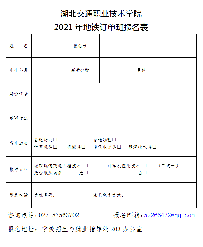 附:2021年地铁订单班报名表
