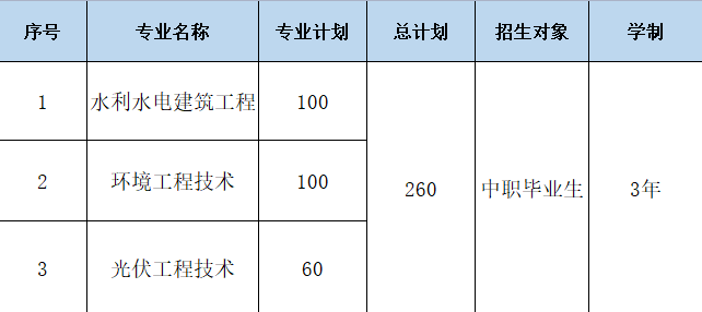 培养目标:能在国家水环境治理、水生态文明建设、海绵城市、抽水蓄能电站建设、清洁再生能源、水资源优化配置以及现代化的水管理等方面,从事水利水电施工管理、工程试验检测、水利工程运行管理与监测维护等工作的高素质技术技能人才。