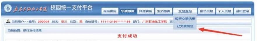 5.若网页没有自动跳转可点击“已交费信息”进行查询缴费记录。