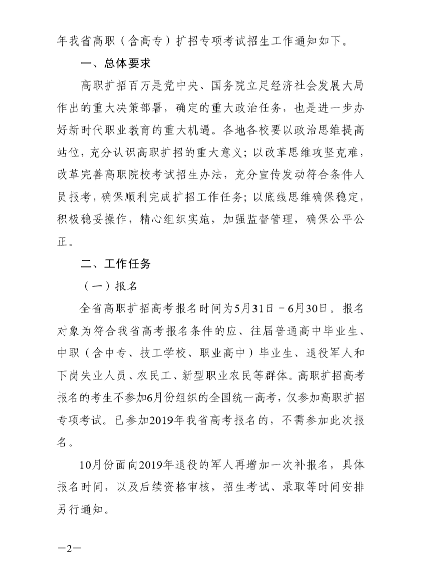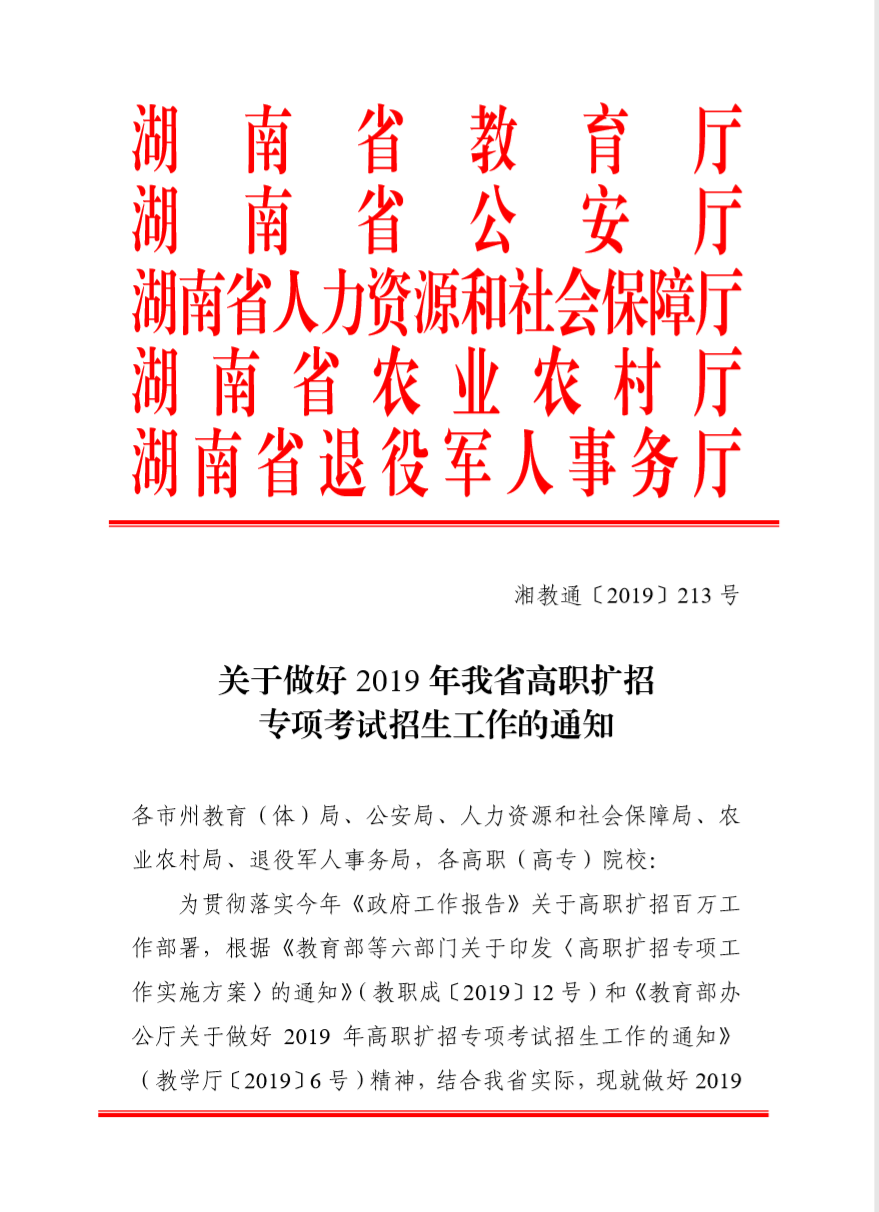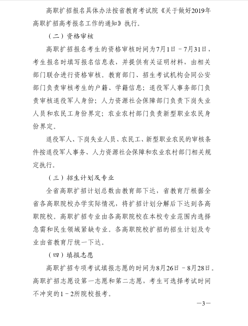 关于做好2019年我省高职扩招专项考试招生工作的通知