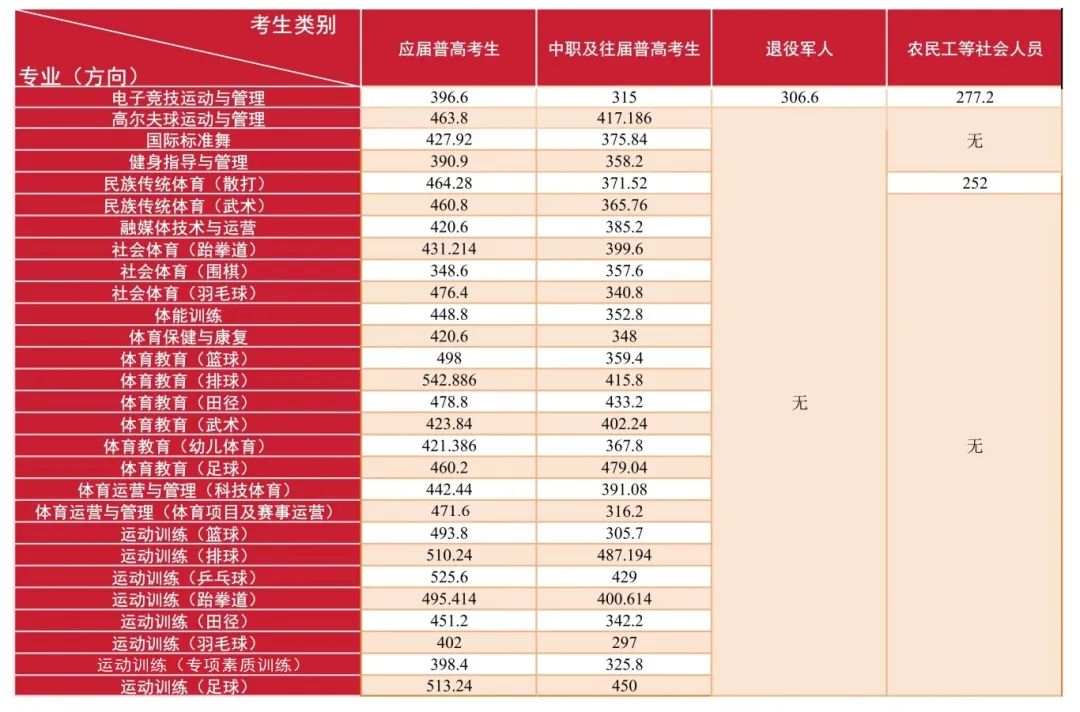 注:根据我院2024年1月30日在湖南体育职业学院招生信息网发布的《湖南体育职业学院2024年单独招生章程》第三十一条,为保障生源质量,我校提前确定录取合格标准,未合格的不予录取。合格标准是:职业技能测试成绩252分。