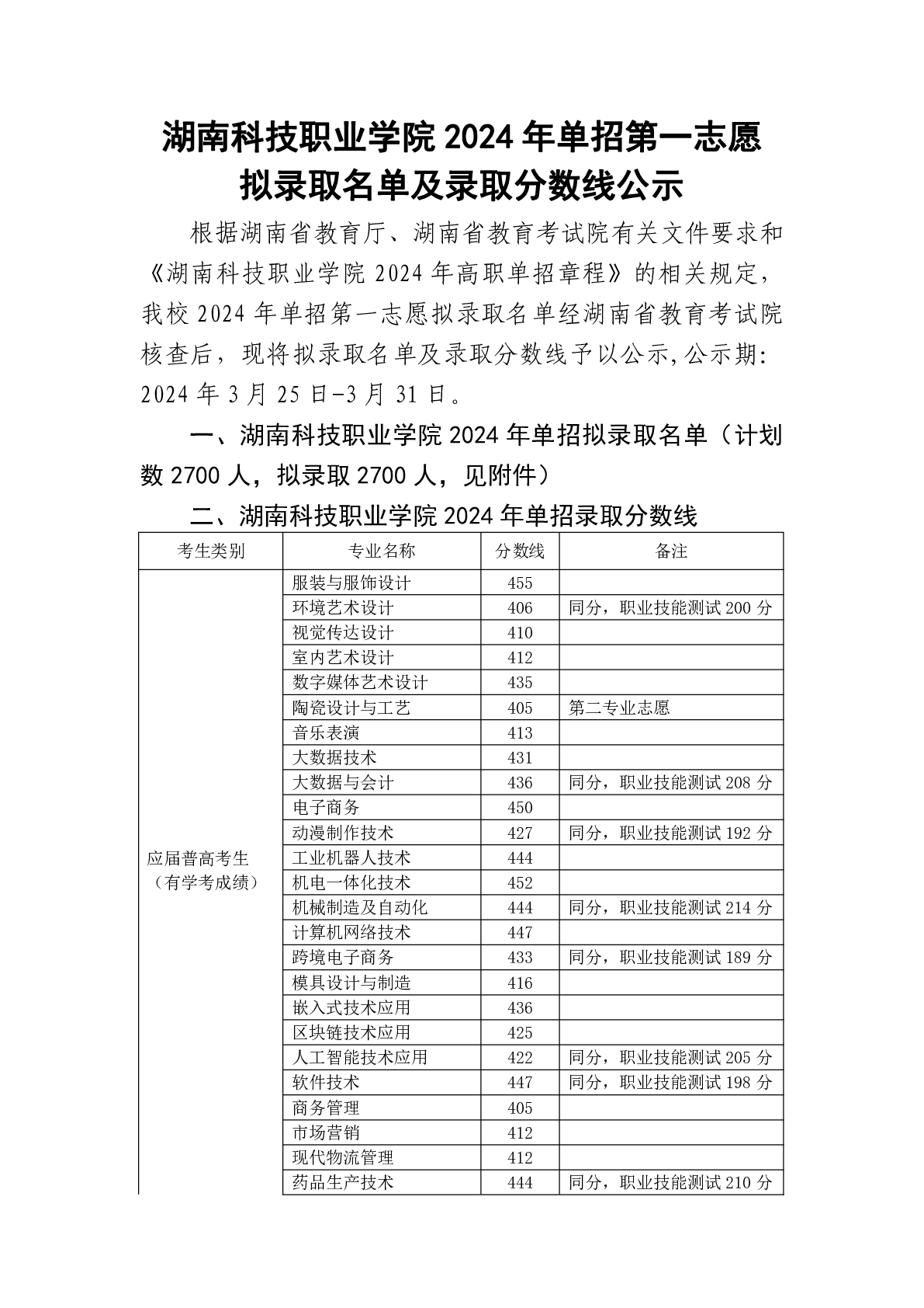 附件:湖南科技职业学院2024年单招一志愿拟录取名单.pdf