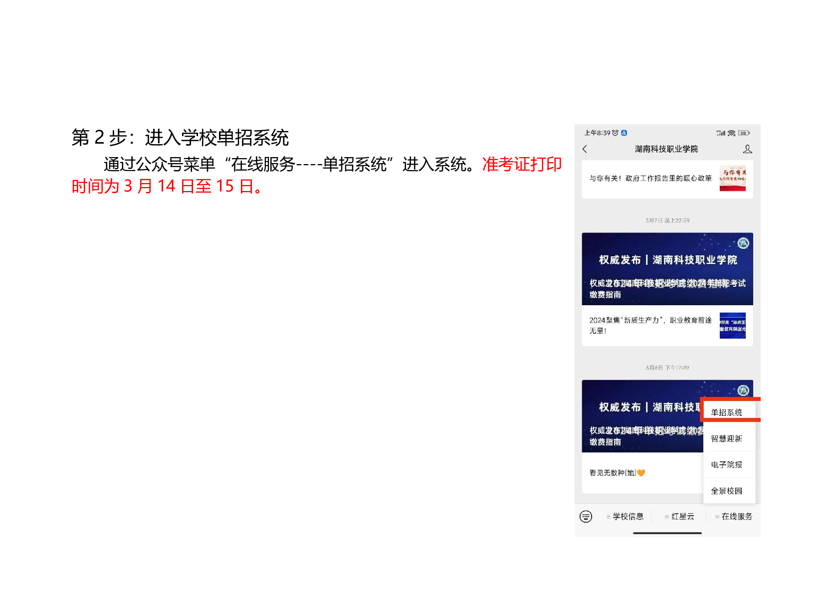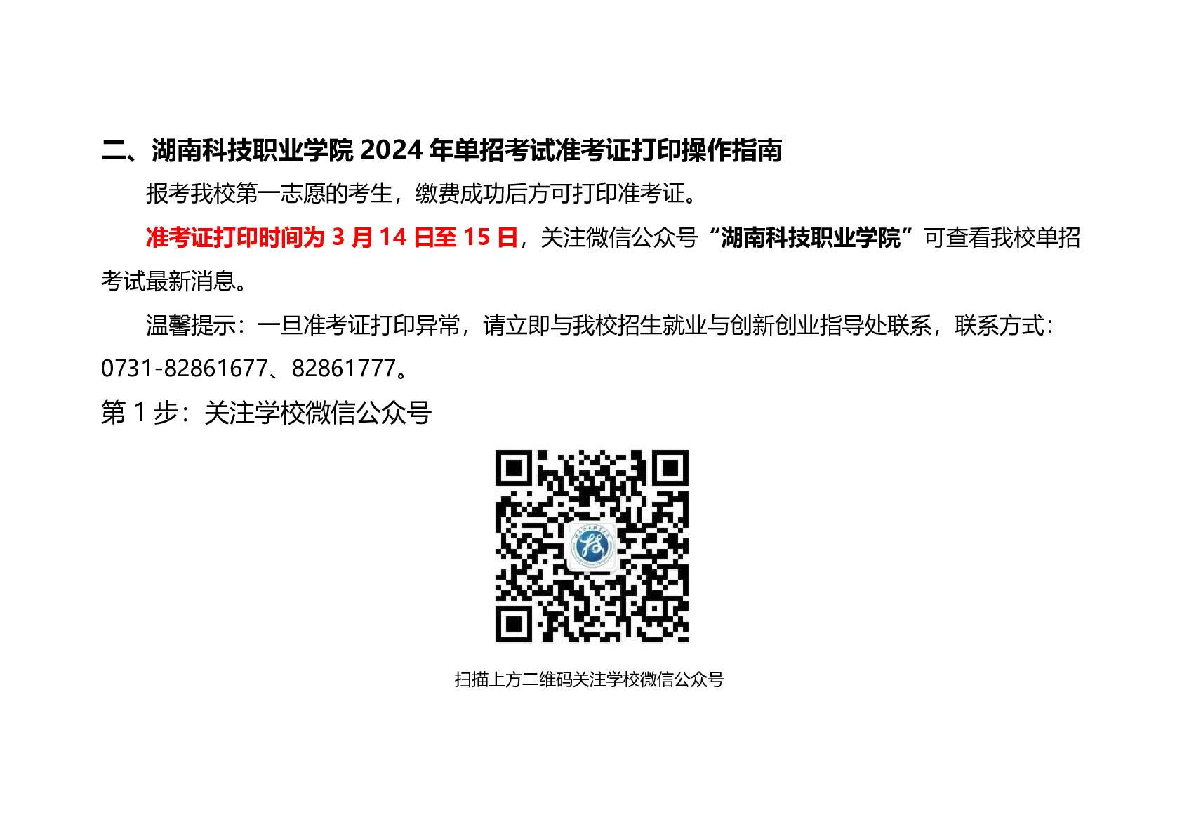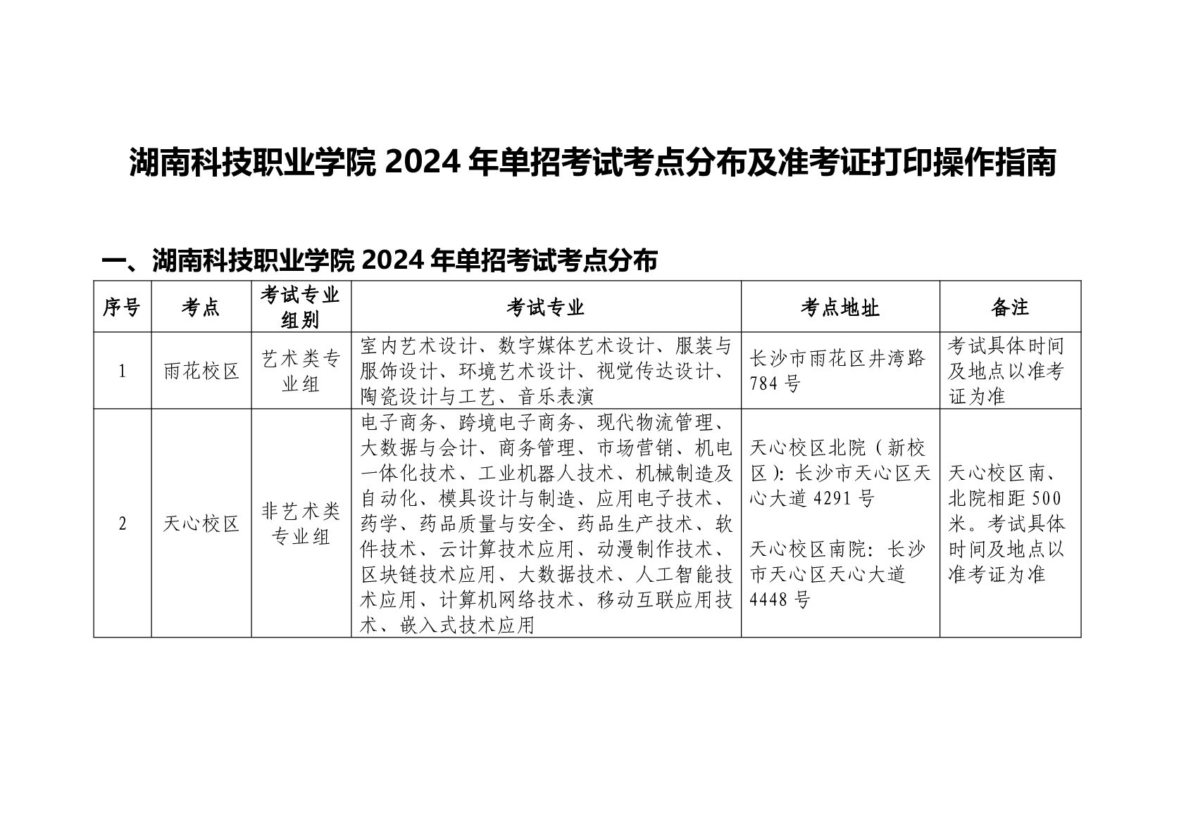 湖南科技职业学院2024年单招考试考点分布及准考证打印操作指南