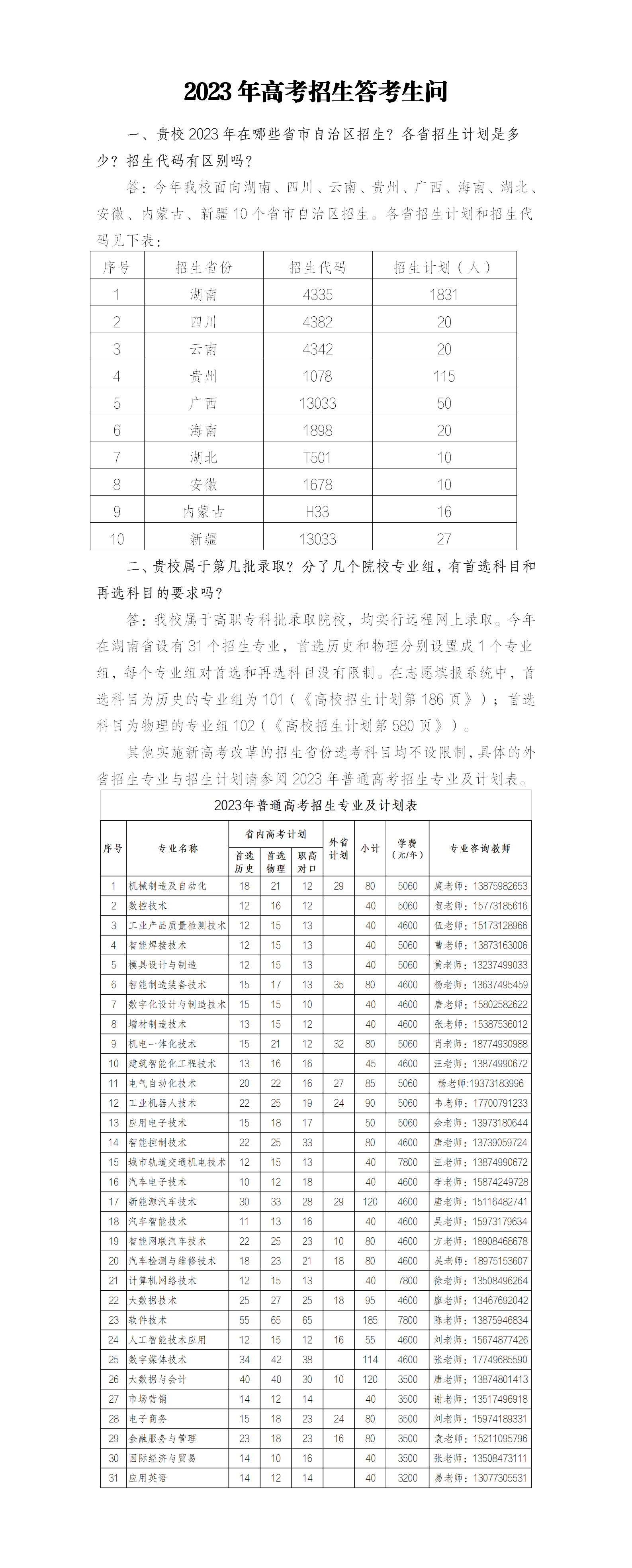 2023年高考招生答考生问