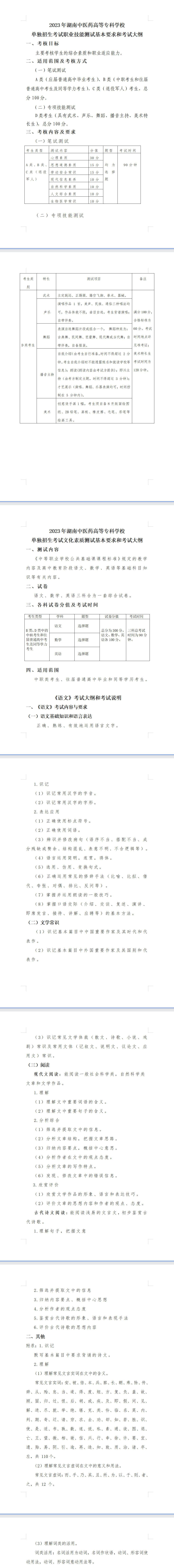 2023年湖南中医药高等专科学校 单独招生考试职业技能测试基本要求和考试大纲