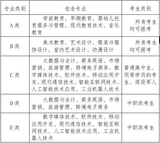 根据生源特征和职业技能测试要求,将我校专业分为A、B、C、D、E类专业组。填报我校志愿的考生只允许在同一专业组内选择2个专业进行填报,并表明是否同意专业调剂(同一专业组内调剂),在报名系统中多填专业视为无效。