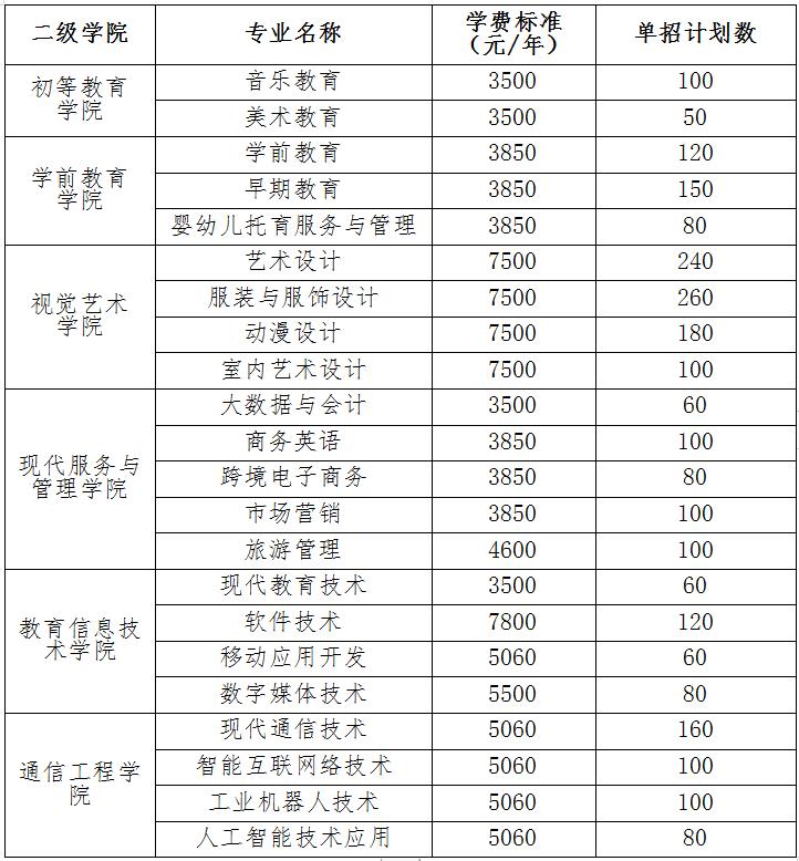 四、招生专业和招生计划我院2022年单招招生总计划为2500个,招生专业22个。具体分布如下:
