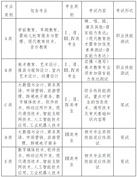 3、Ⅳ类考生只需参加我院组织的职业技能测试,免于文化素质测试。