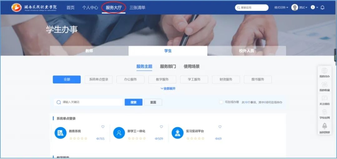 (3)点击导航栏处的“服务大厅”即可进入服务大厅页面: