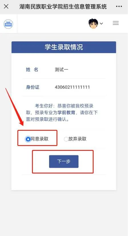 1、同意录取,按照下图逐步操作,完成录取确认手续。