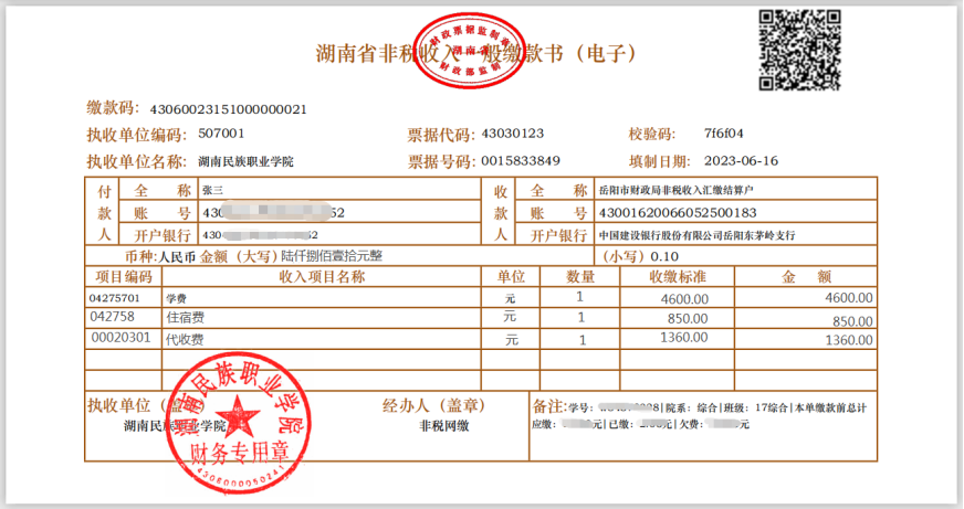 附:《湖南省非税收入一般缴款书(电子)》票据样式: