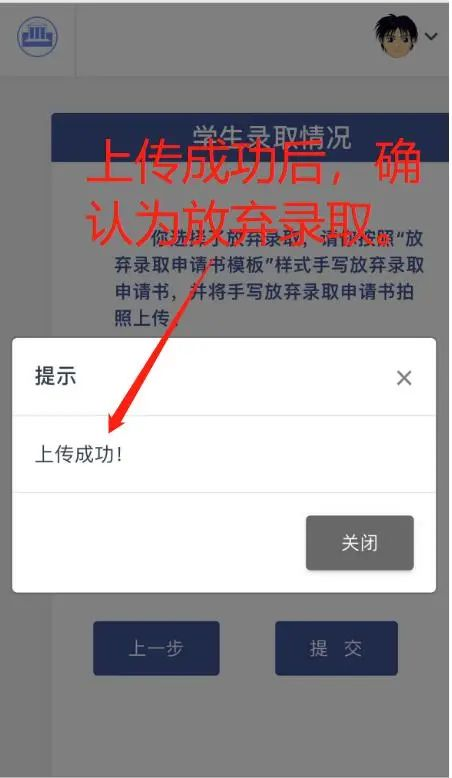 2、放弃录取,则按要求下载放弃入读承诺书,打印并填写好,再和本人身份证(正面)一起拍照上传至确认系统。