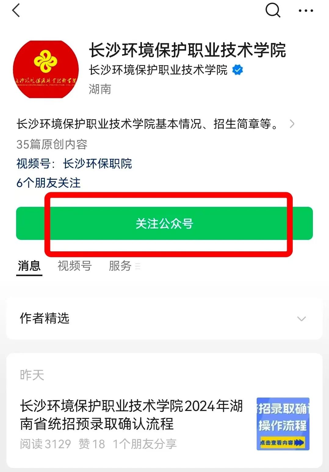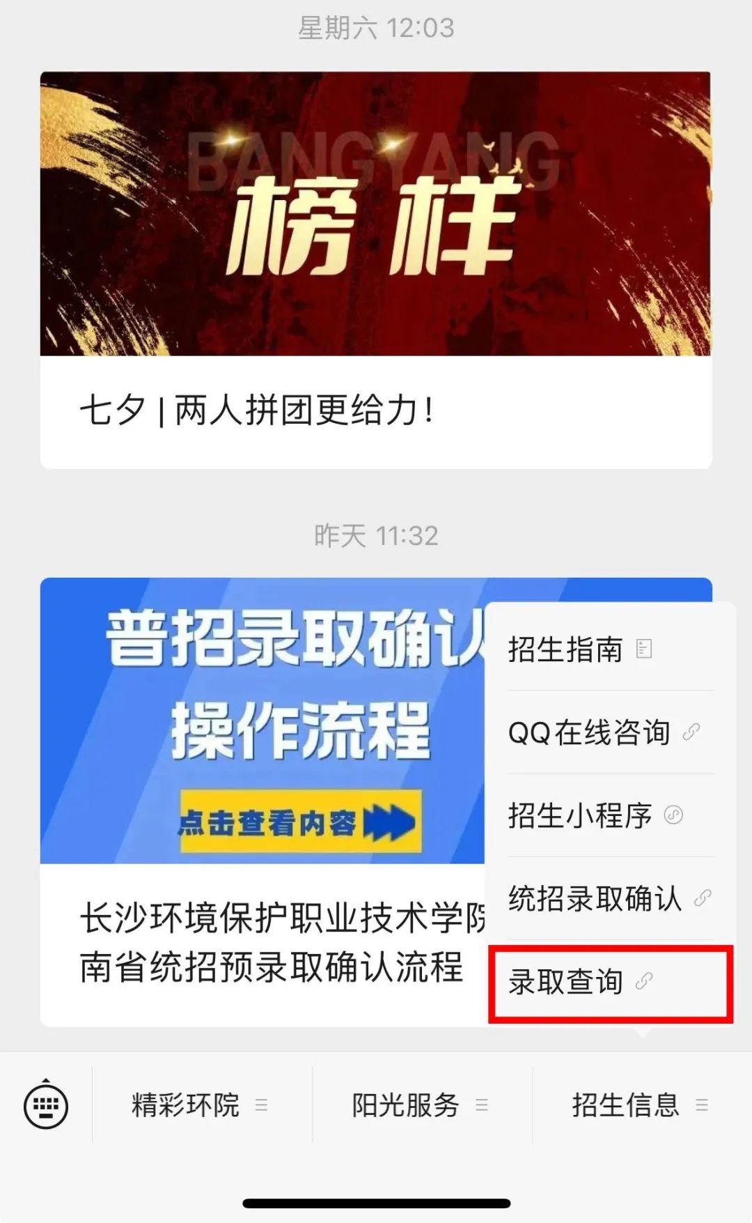 01关注“长沙环境保护职业技术学院”—点击右下角录取查询—输入考生号或身份证号