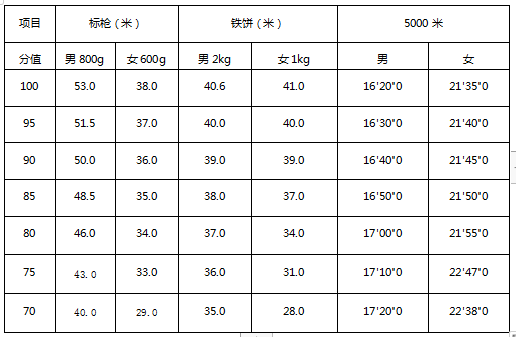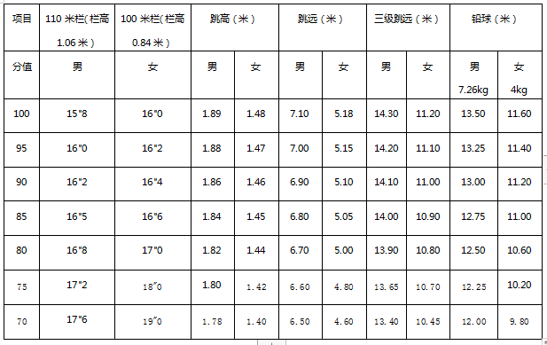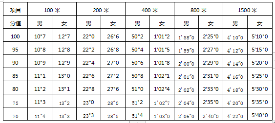 测试方法:考生可以从以下开设的田径项目中任选一项参加考试。