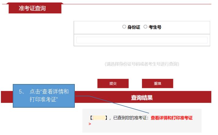 5、点击“查看详情和打印准考证”。