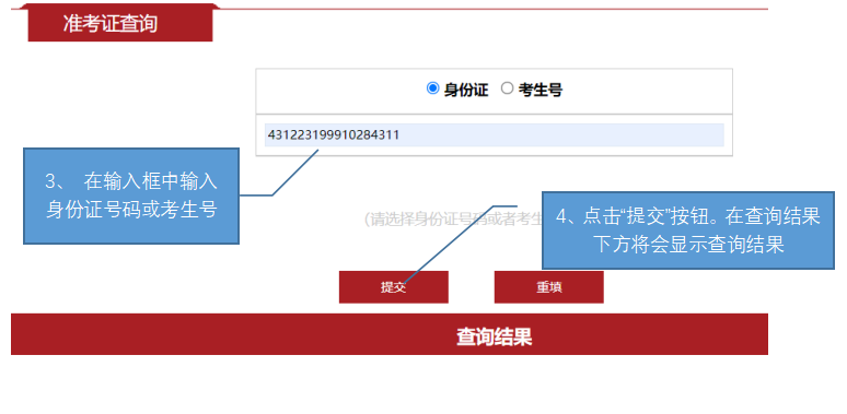 3、输入身份证号码或考生号。