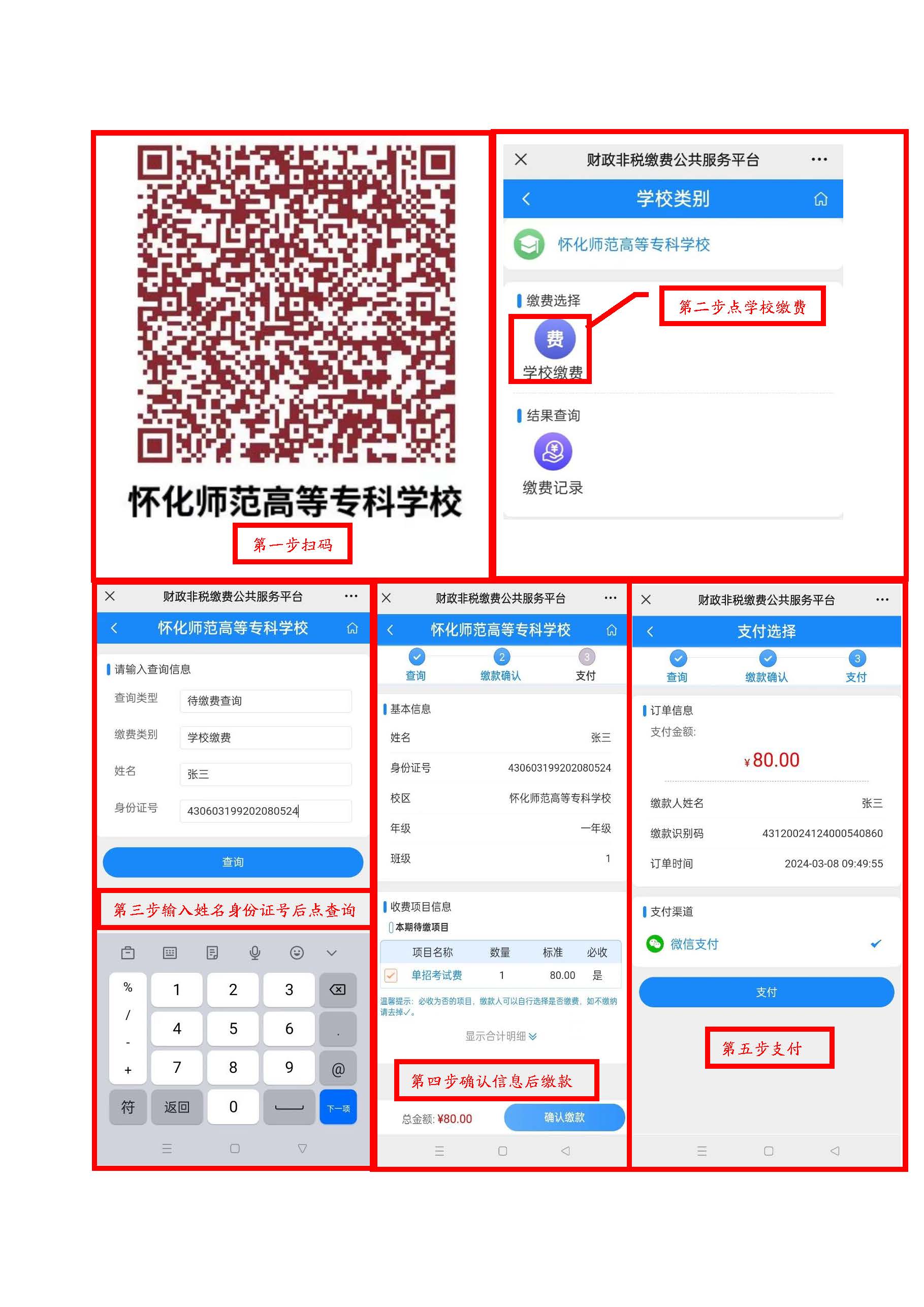 附:怀化师范高等专科学校单招考试网上缴费流程图