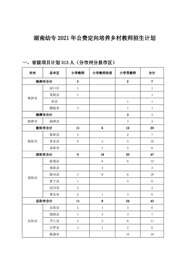 湖南幼专2021年公费定向培养乡村教师招生计划