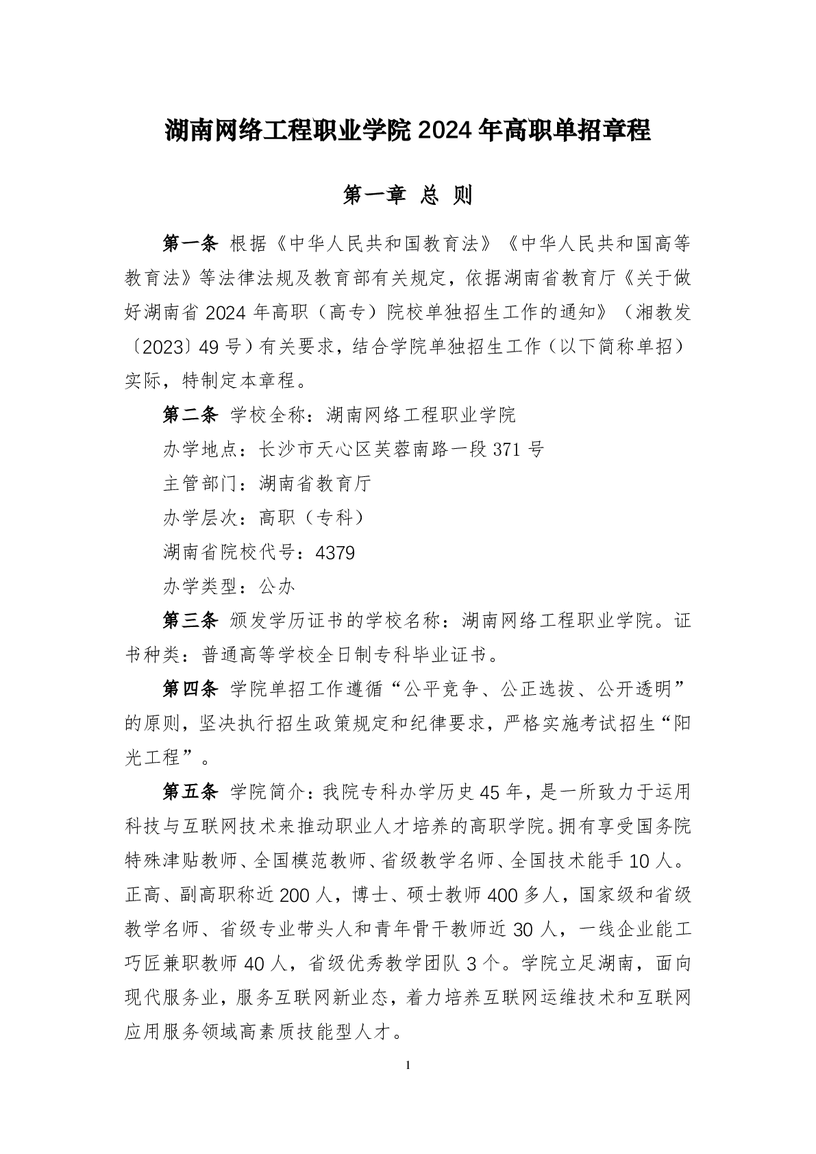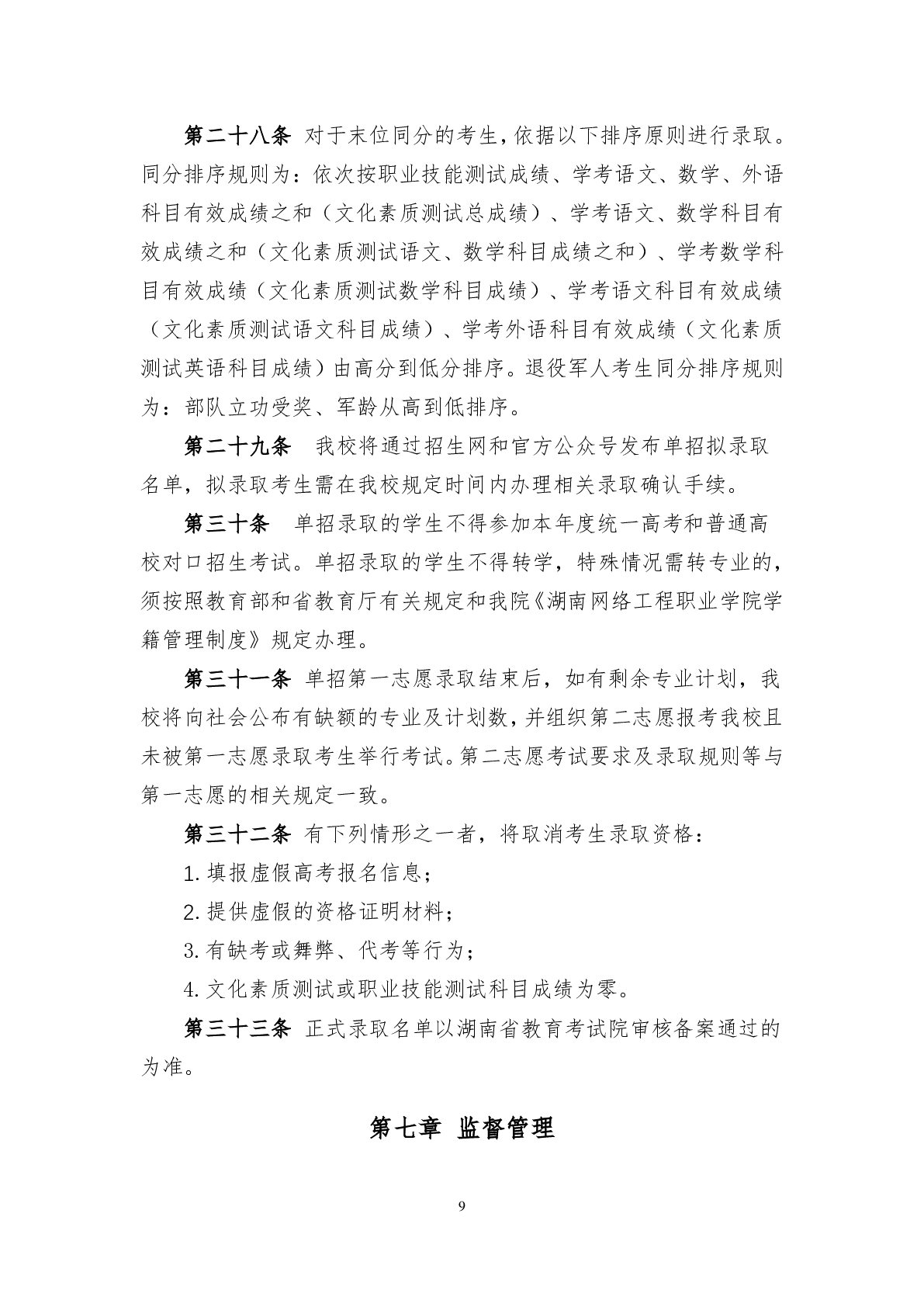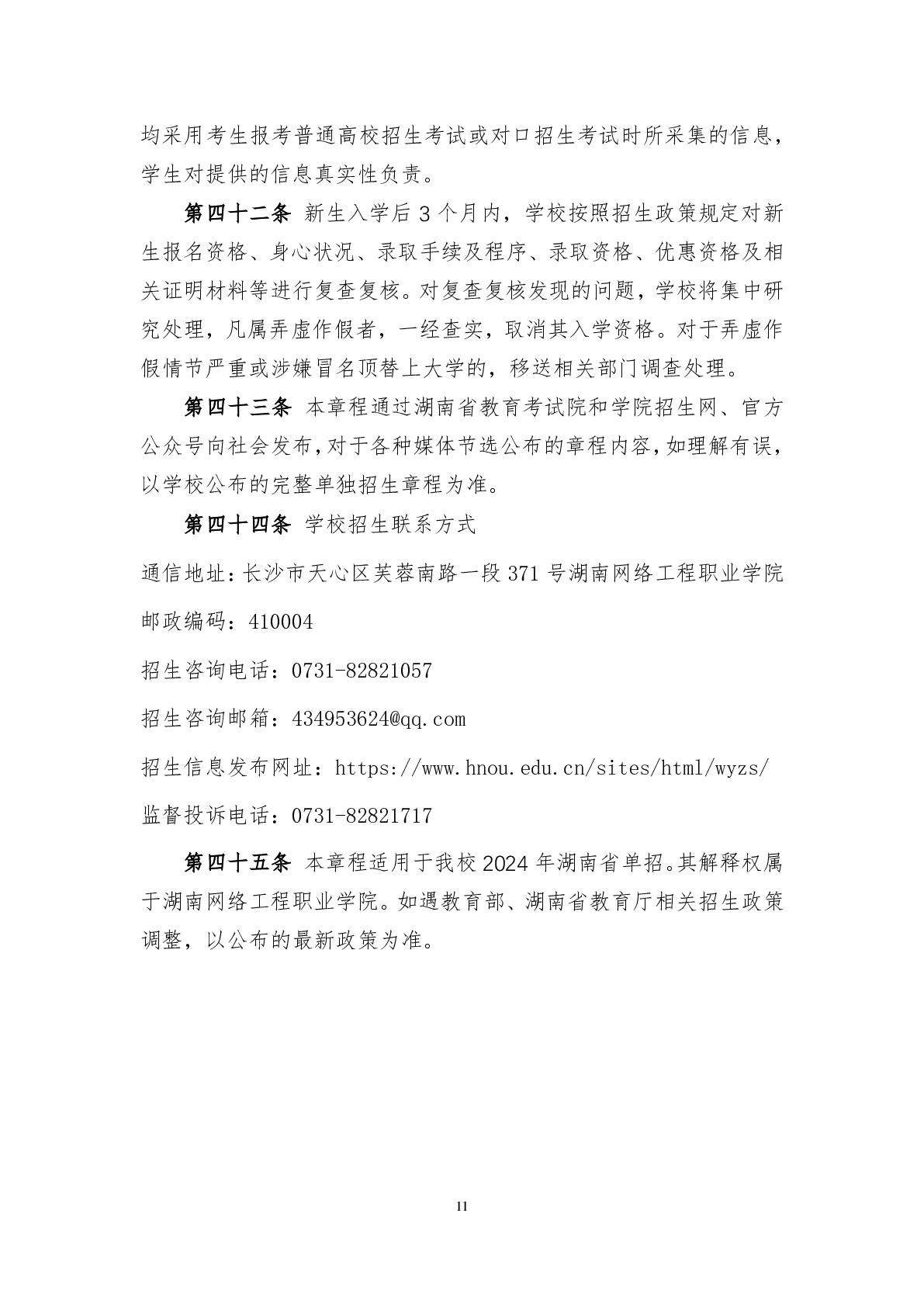 湖南网络工程职业学院2024年高职单招章程.pdf