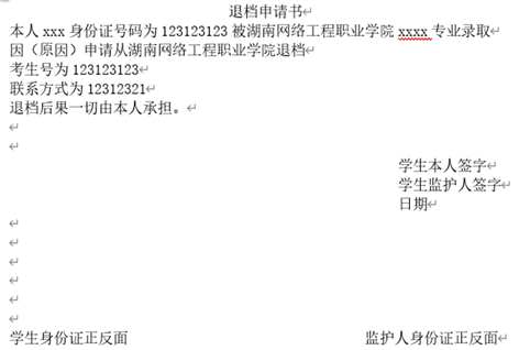 需在指定时间内联系学校招生办确认可以退档后手写退档请书并发送至hnwlgczyxy@163.com邮箱(注意格式和图片内容清晰度)