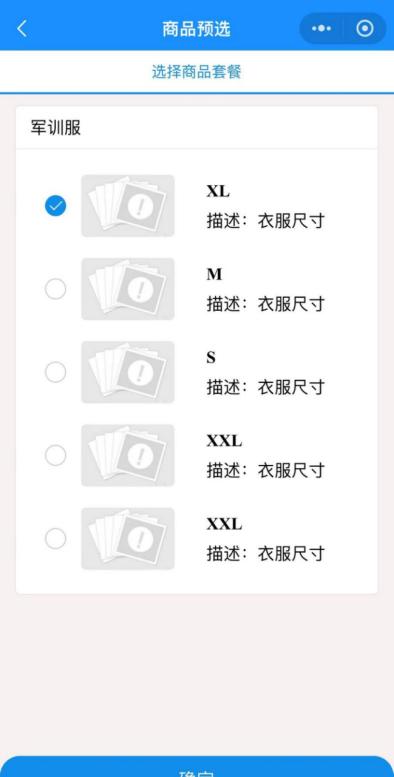 5.在迎新首页点击“军训服”选择您军训服的尺码