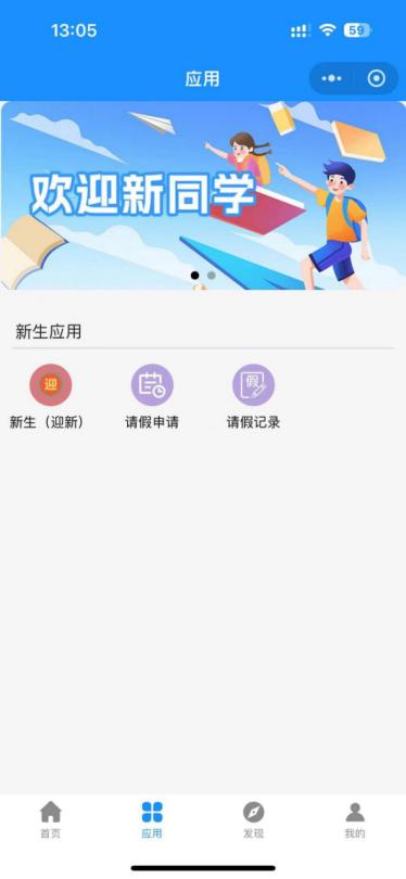 2.在小程序页面点击底部应用,然后选择“新生(迎新)”,进入迎新首页。