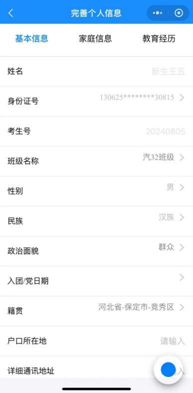 3.在迎新首页选择“信息采集”填写您的个人资料