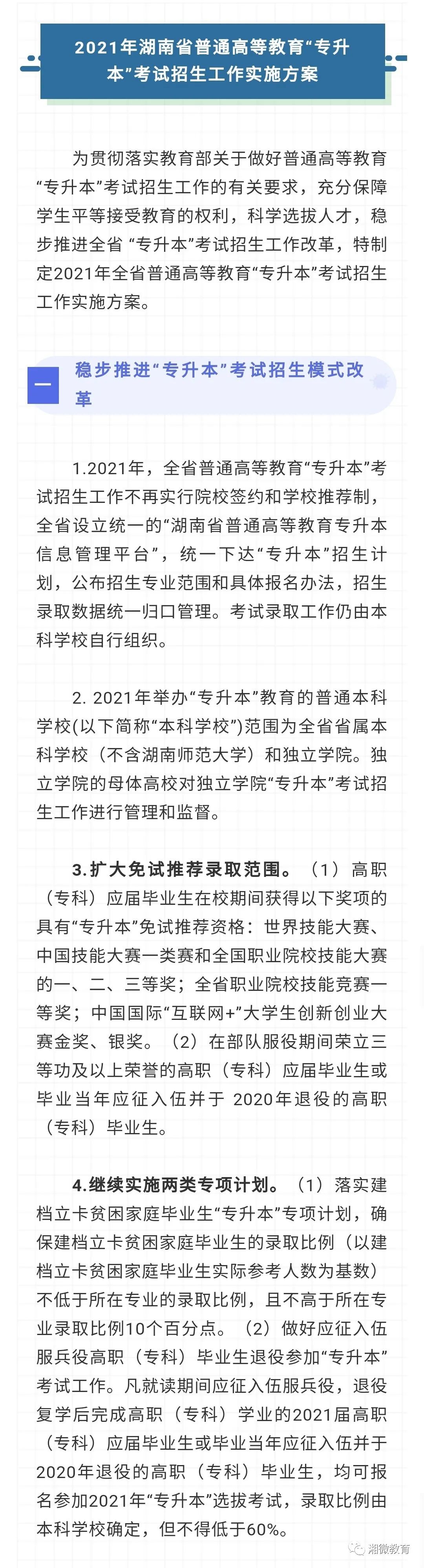 扩大免试推荐录取范围,2021年湖南“专升本”方案来了