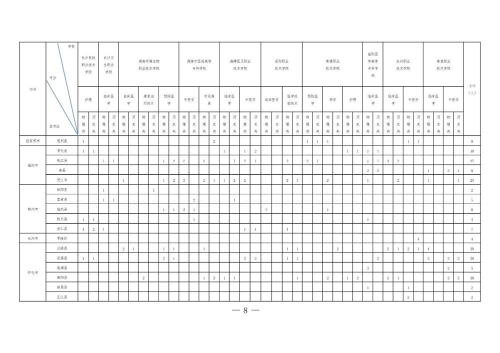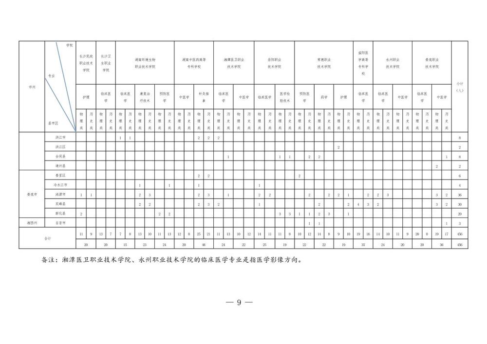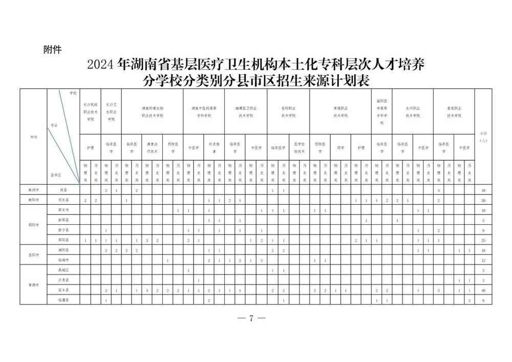 附件:2024年湖南省基层医疗卫生机构本土化专科层次人才培养分学校分类别分县市区招生来源计划表