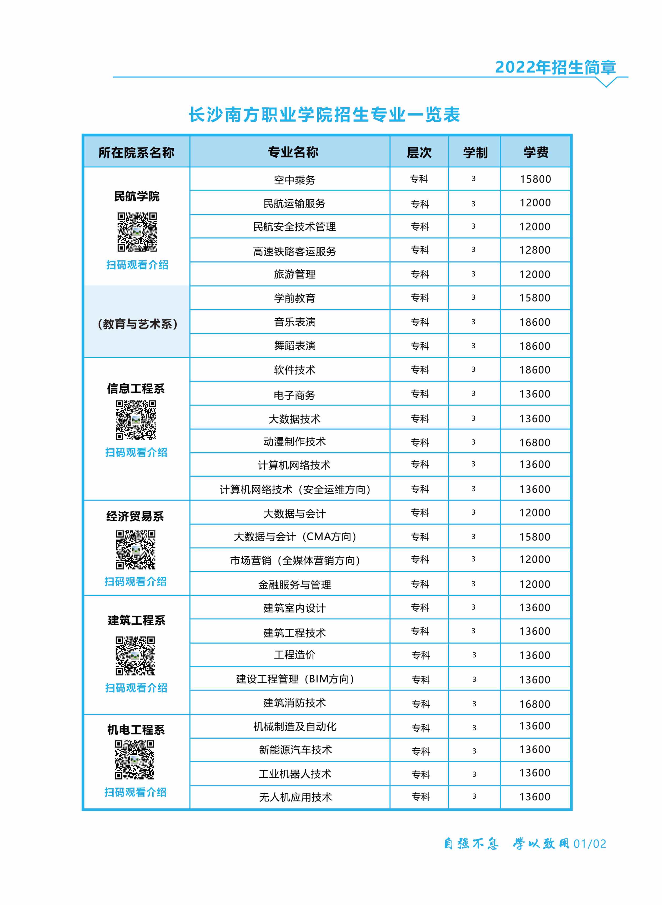 2022年长沙南方职业学院三年制高职招生简章学费版本