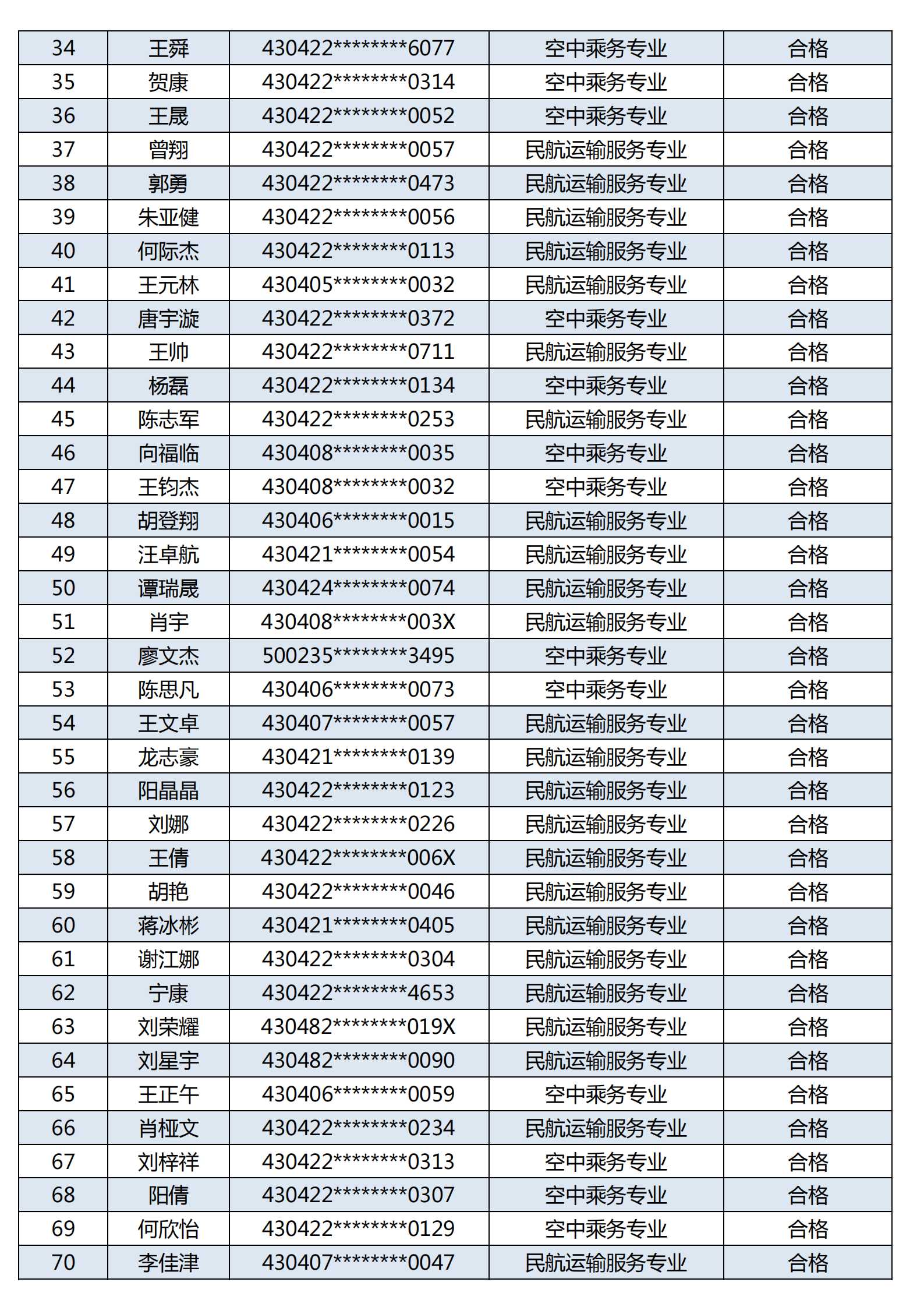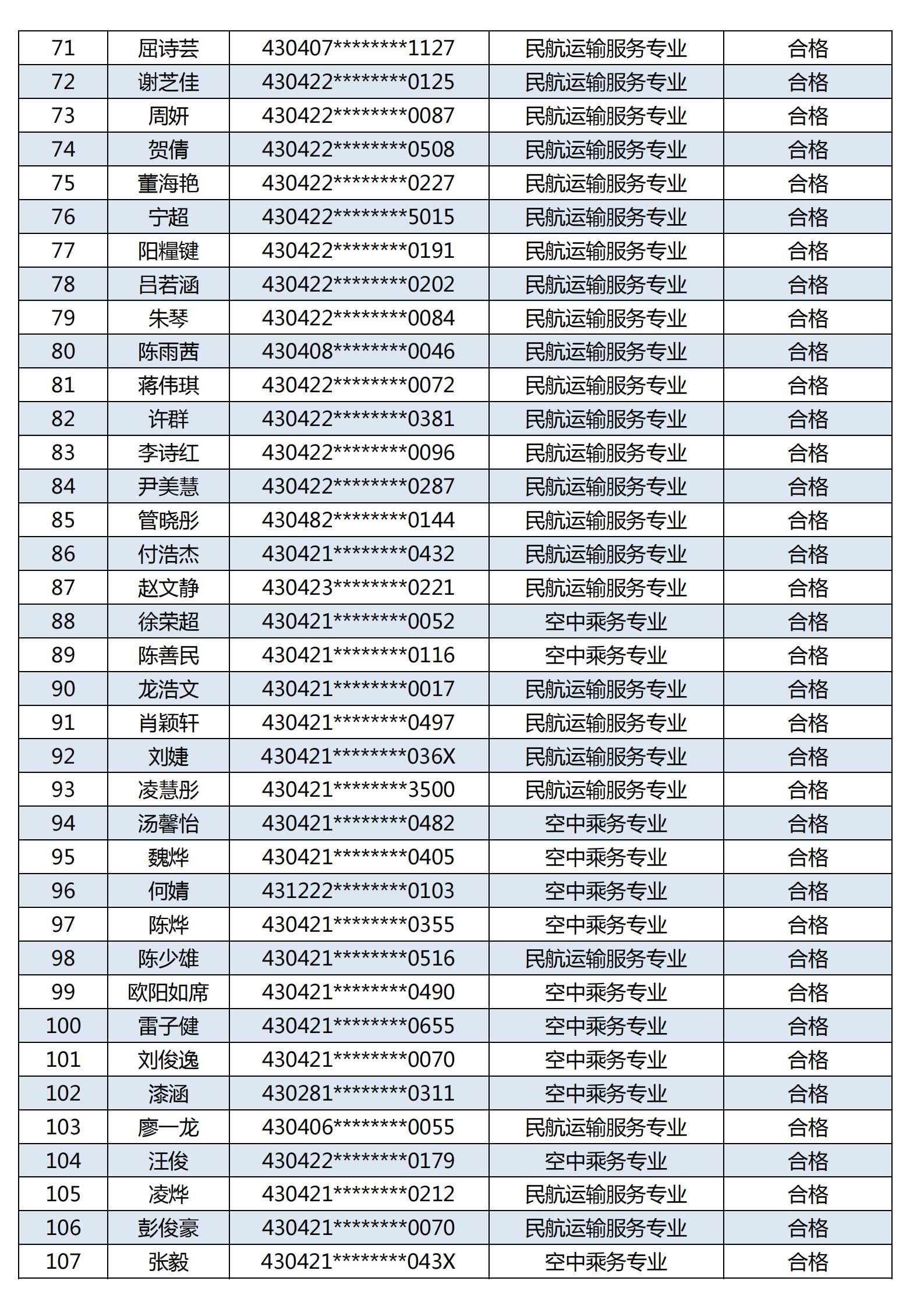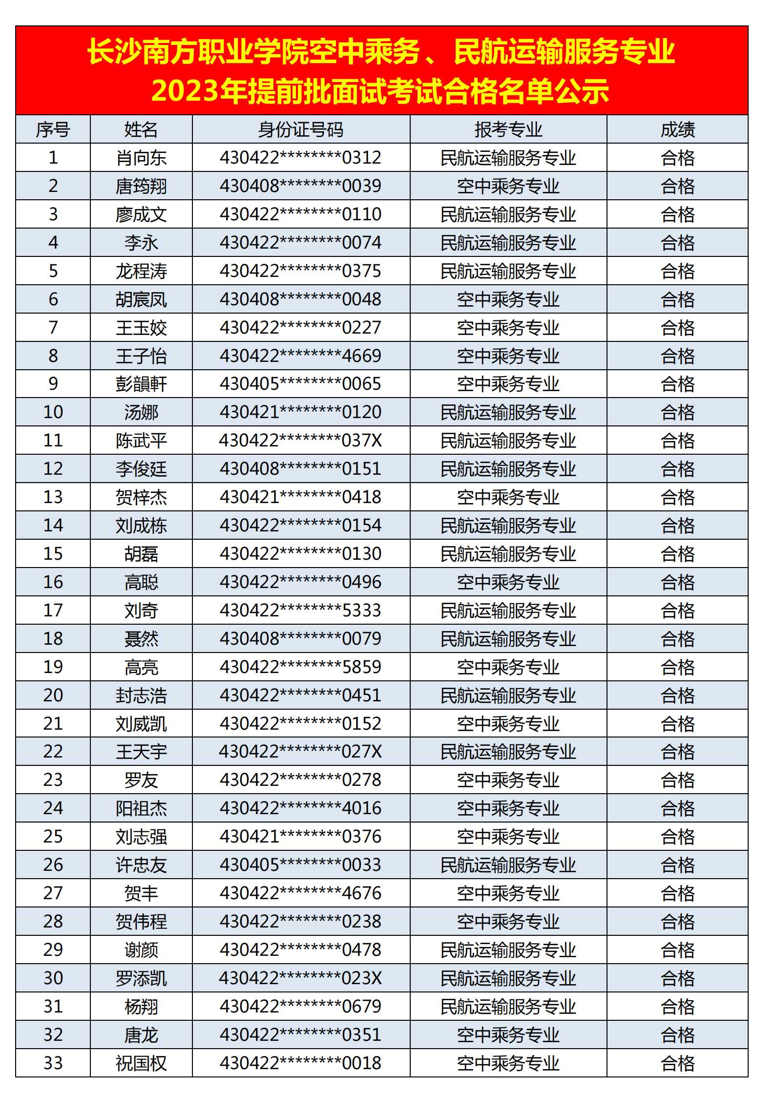 附:长沙南方职业学院空中乘务、民航运输服务专业2023年提前批面试考试合格名单公示