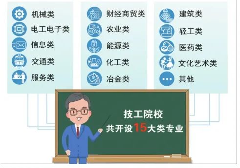 全国技工院校共开设15个大类合计330个专业,涉及智能网联汽车技术应用、服务机器人应用与维护、虚拟现实技术应用、智能制造技术应用、数字媒体技术应用、健康与社会照护、电子竞技运动服务与管理等,涵盖一、二、三产业且实行动态调整,这些专业培养的都是社会所需的技能人才,你可以根据兴趣爱好和自身需求自由选择。