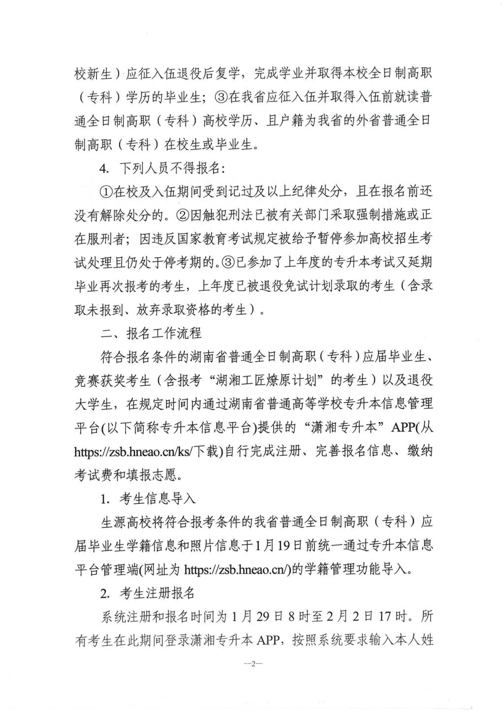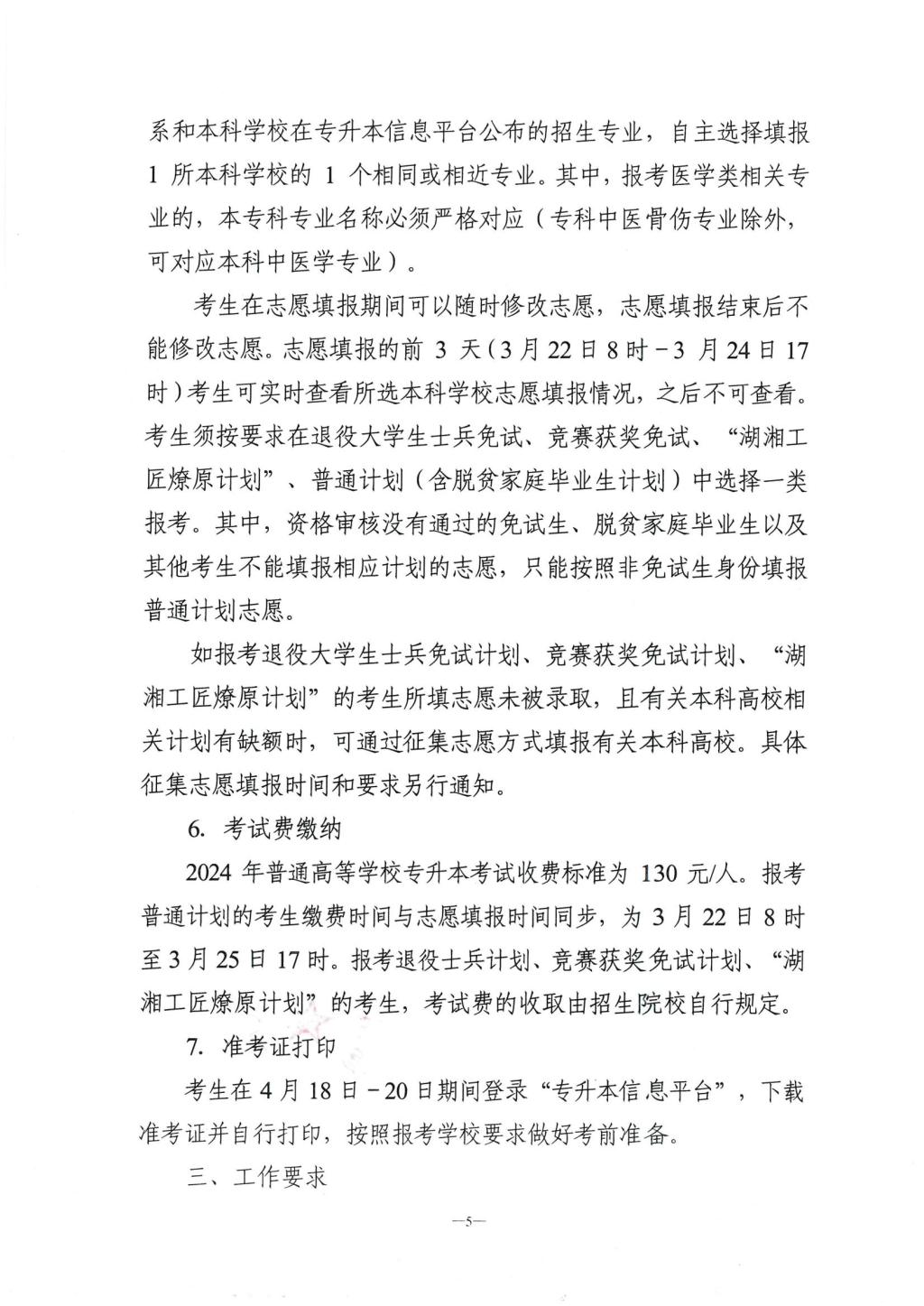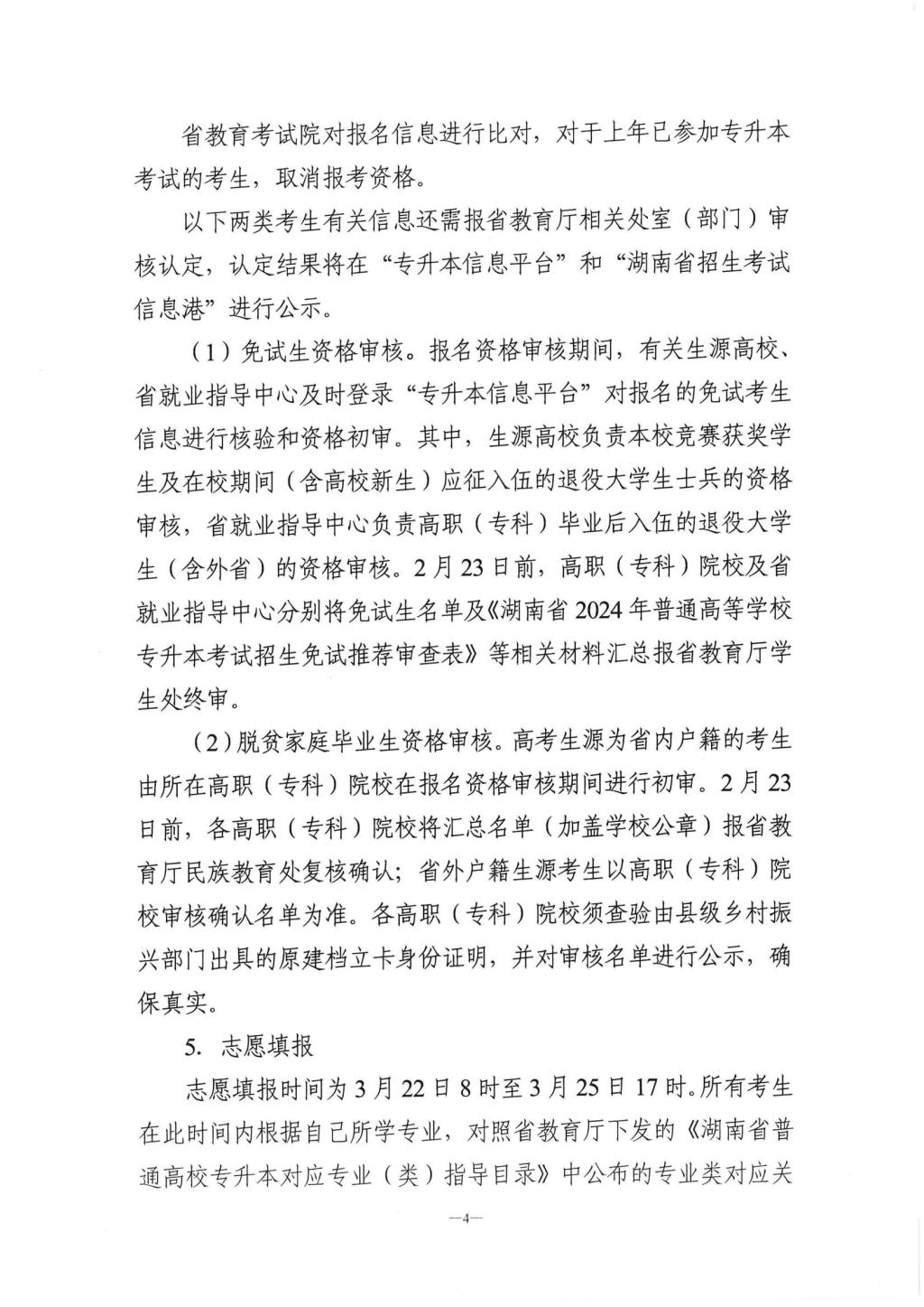 关于做好2024年湖南省普通高等学校“专升本”考试招生报名工作的通知 湘教考成字〔2024〕1号