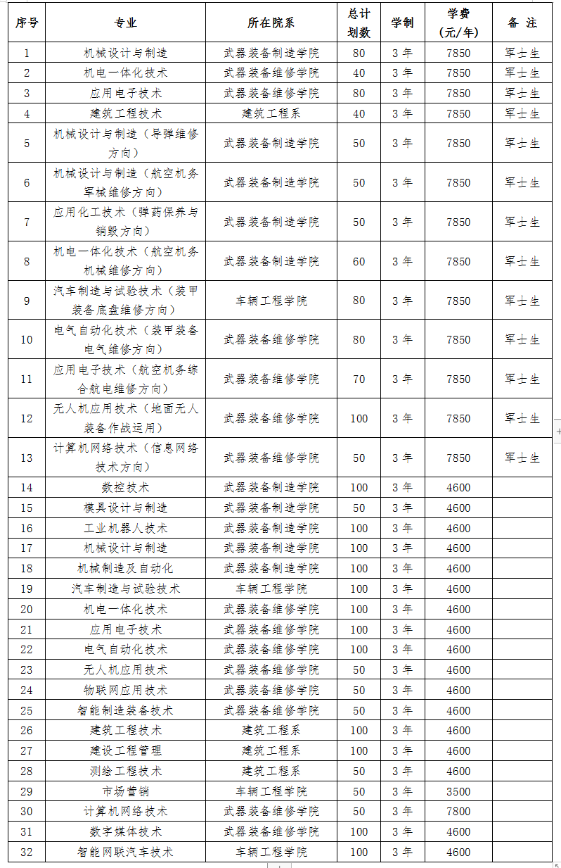 学院招生类别:定向培养军士类、普通类