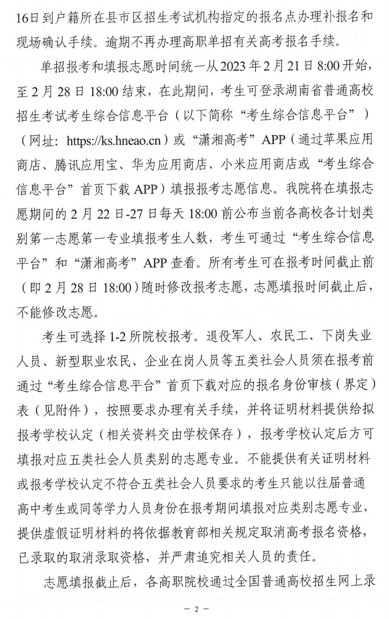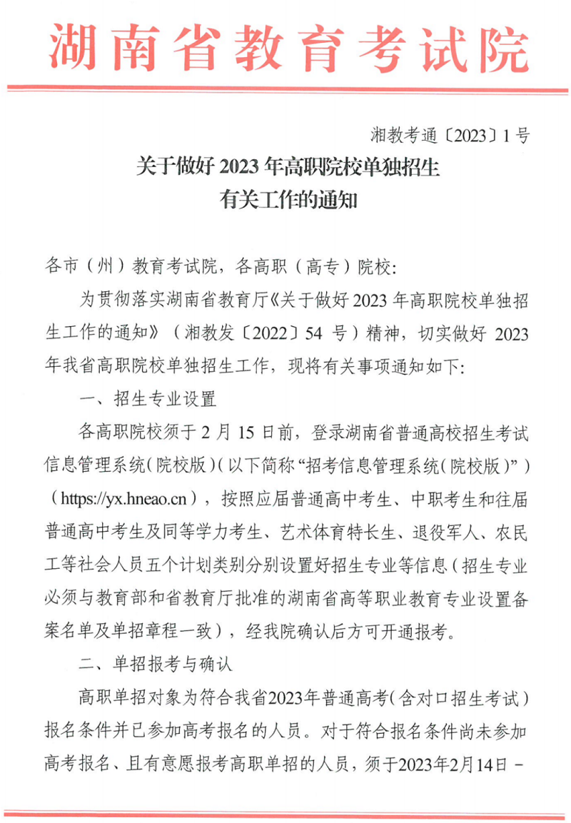 湖南省关于做好2023年高职院校单独招生有关工作的通知