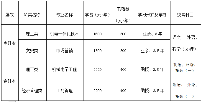 第三章 招生范围、层次、科类、专业、收费、学习形式、学制、考试科目